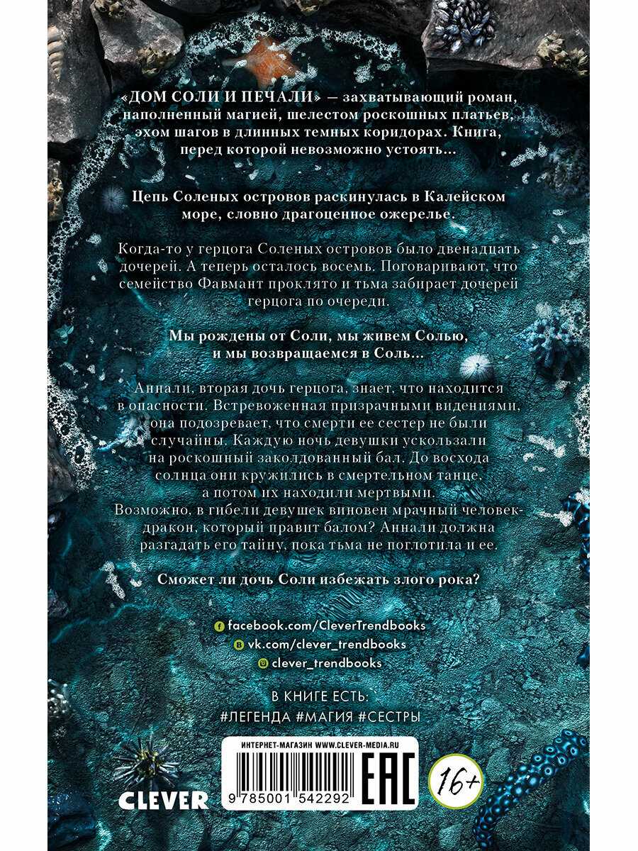 Когда-то у герцога Соленых островов было двенадцать дочерей. А теперь осталось всего восемь. Поговаривают, что семейство Фавмант проклято и тьма забирает дочерей герцога по очереди. Аннали, вторая дочь герцога, знает, что находится в опасности. Встревоженная призрачными видениями, она подозревает, что смерти ее сестер не были случайны. Каждую ночь девушки ускользали на роскошный заколдованный бал. В драгоценных туфельках и одеждах из шелка они кружились в смертельном танце до восхода солнца. Как и ее сестры, Аннали готова поддаться искушению и последовать на праздник с пленительным человеком-драконом. Встречи с ним таят загадку и опасность. Сможет ли дочь Соли устоять перед чарами тьмы?
