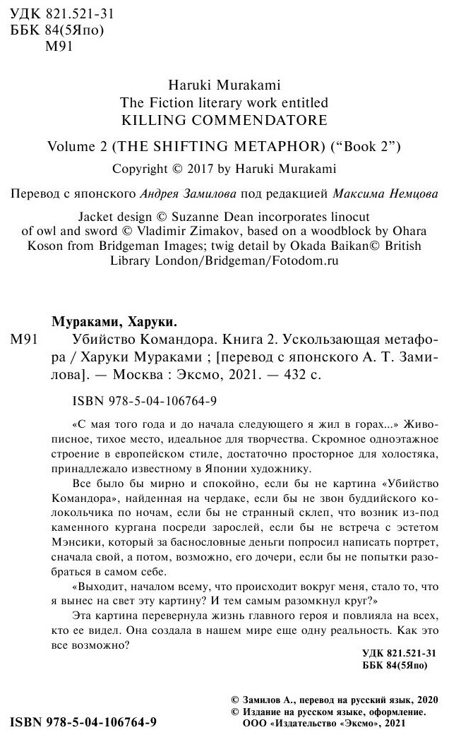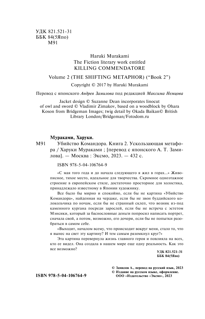 Убийство Командора. Книга 2. Ускользающая метафора (Мураками Харуки); ООО "Издательство "Эксмо", 2020