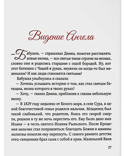 Книга Ксении Соботович и Анны Галковской "Истории из детства святых" включает десять увлекательных рассказов о жизни святых подвижников и построена в форме бесед бабушки и дедушки с внуками.