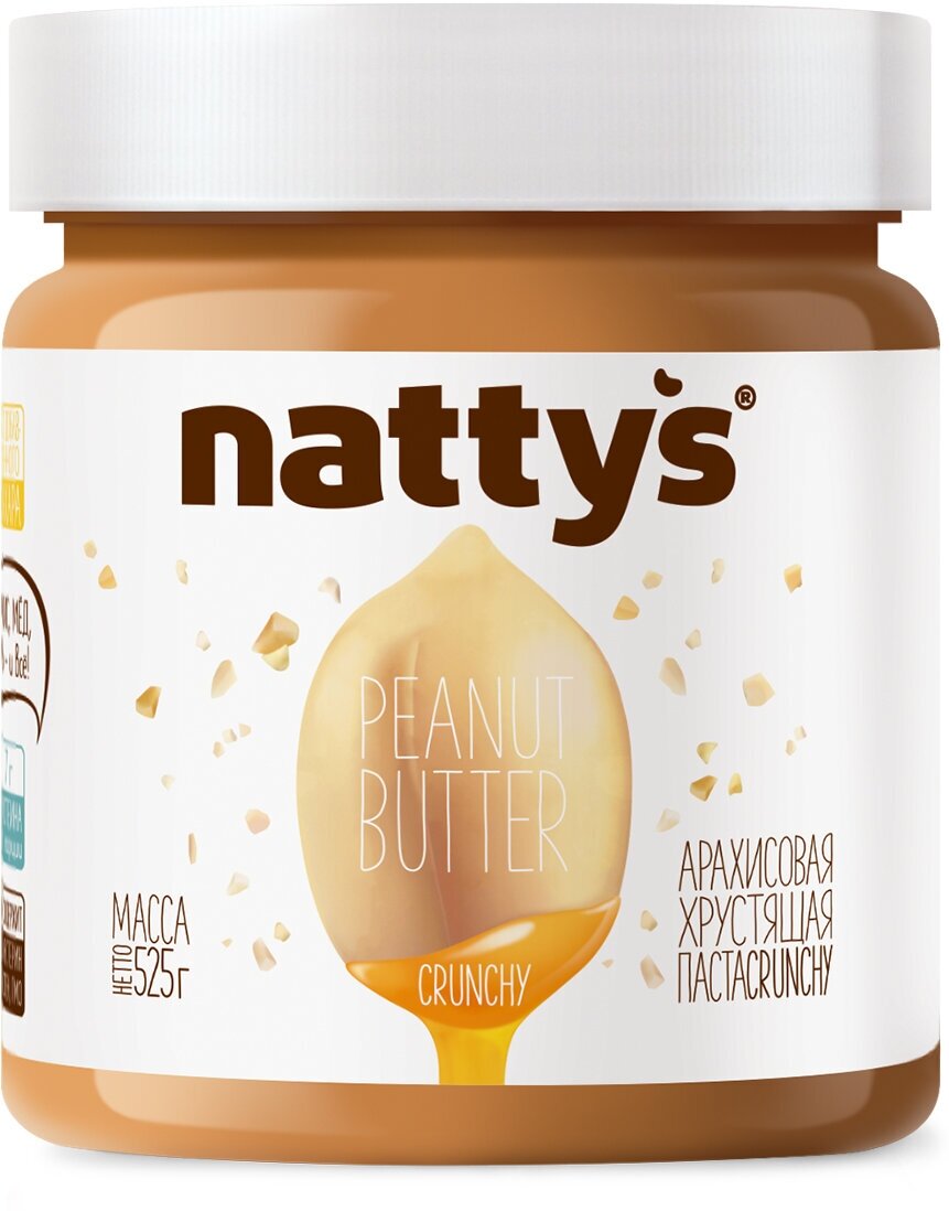Солено-сладкая хрустящая Арахисовая паста Crunchy Nattys - абсолютно натуральная и очень вкусная: в составе только арахис, кусочки дробленого арахиса, немного мёда и морской соли. Источник белка и правильных растительных жиров.