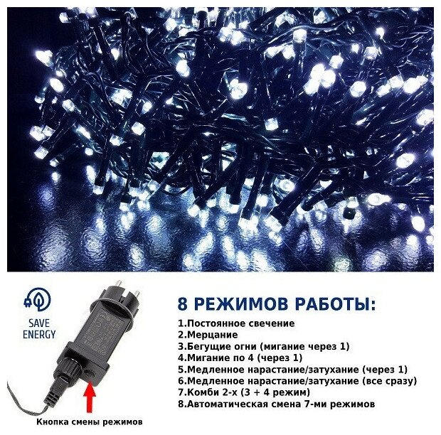 Основное преимущество этой гирлянды - волшебная яркость света, которая позволит создать прекрасные узоры и игры света на вашей ёлке или фасаде дома. Световые элементы на этой гирлянде реализованы с использованием технологии LED, что обеспечивает яркий и насыщенный цвет свечения.