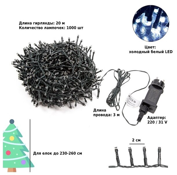 Световая гирлянда Winter Glade CC1000 20 м белый холодный - это великолепное новогоднее украшение для вашего дома или улицы. Она станет идеальным способом создать праздничную атмосферу и радость для всей семьи.