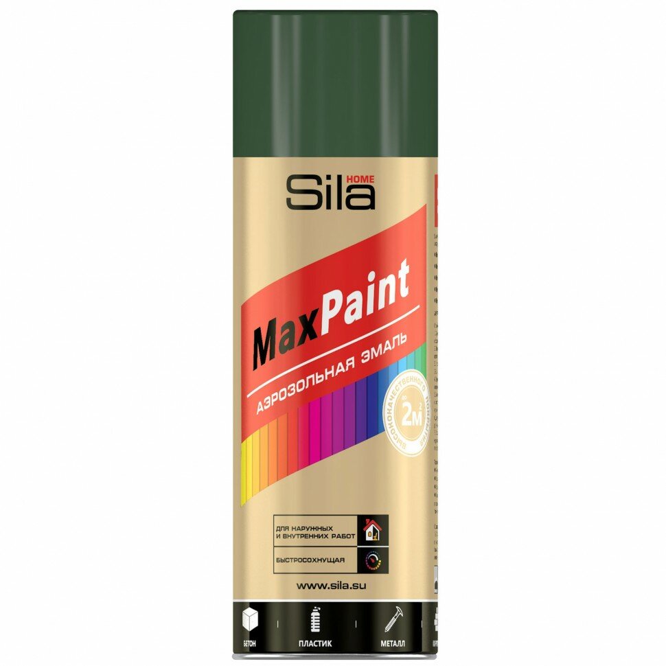 Эмаль универсальная SILA колеруется в соответствии с европейским цветовым стандартом RAL. Обладает двойным укрывом (одним баллоном можно окрасить в 2 раза больше площади, чем обычными аэрозольными эмалями), превосходной атмосферостойкостью и адгезией к окрашиваемой поверхности. Адаптирована под российские климатические условия.