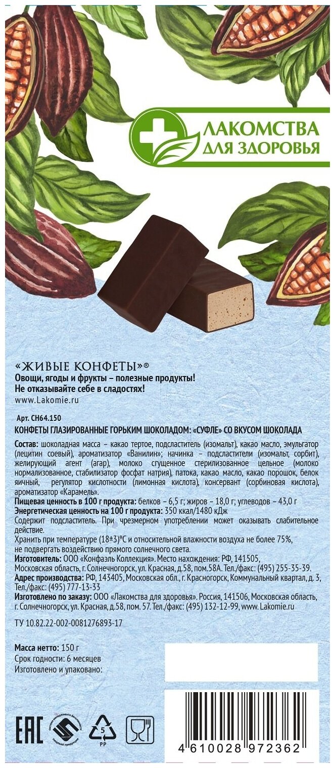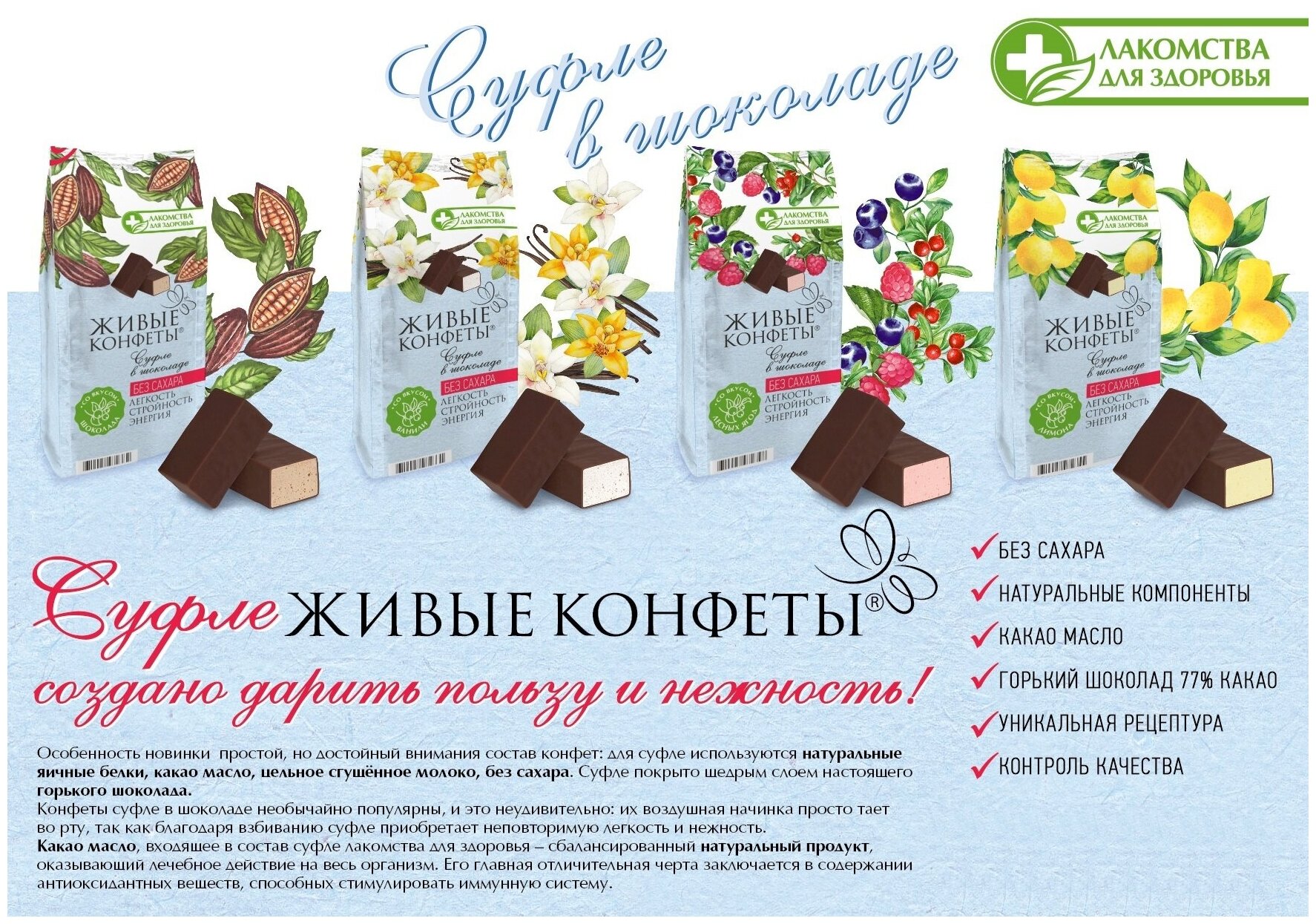Сервис сравнения цен СкидкаГИД предлагает сравнить цены на товар «Суфле в шоколаде Живые конфеты без сахара 150г Конфаэль Коллекция»