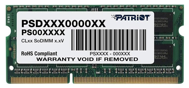 Модуль памяти Patriot Memory DDR3L SO-DIMM 1600Mhz PC3-12800 CL11 - 4Gb (PSD34G1600L2S)