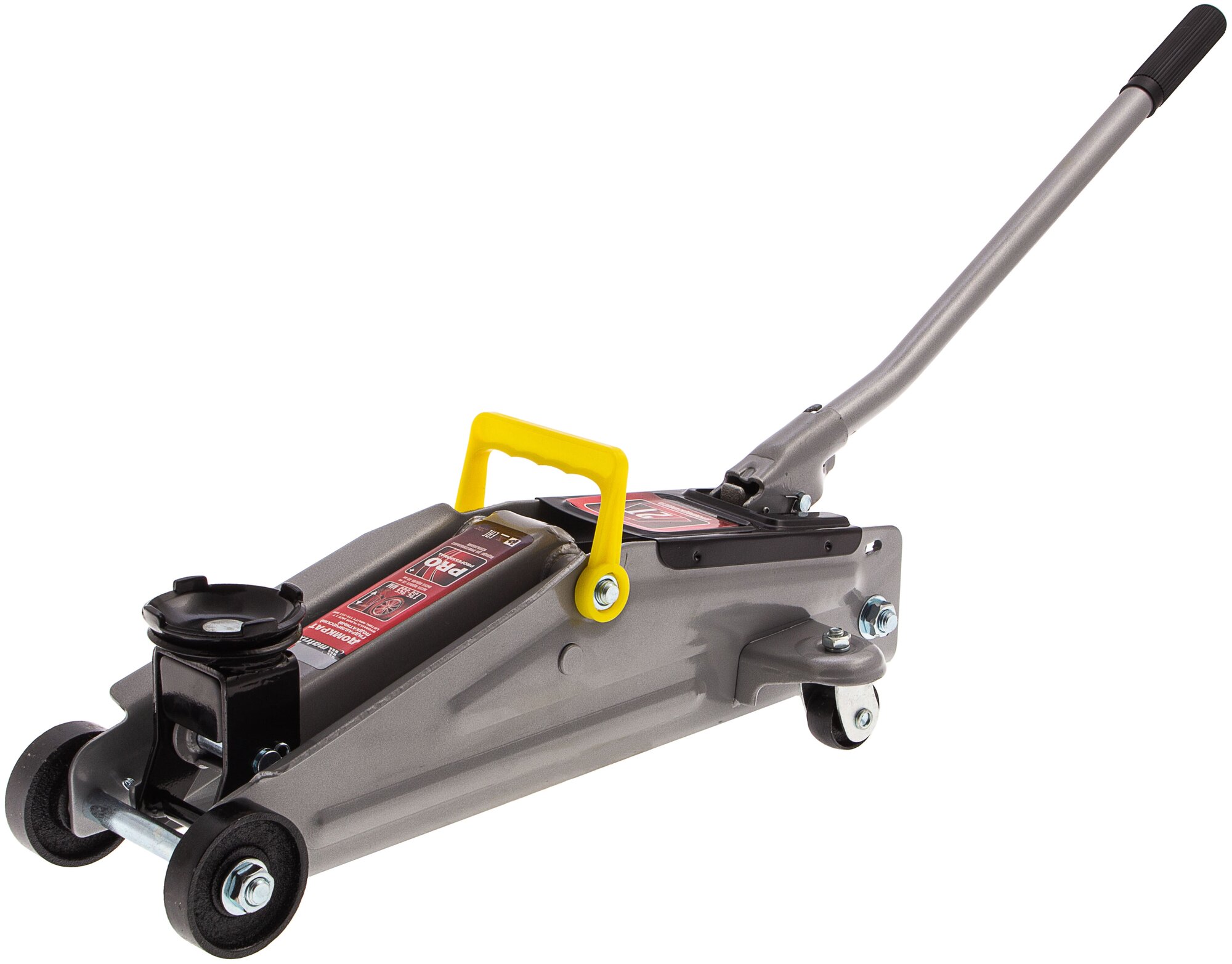 Подкатной гидравлический домкрат Matrix , h подъема 135-355 мм, - полупрофессиональное гаражное оборудование, способное поднимать груз массой до 2 т. Высота подхвата 135 мм позволяет использовать домкрат для автомашин со стандартным клиренсом. Высота подъема составляет 355 мм. Домкрат будет полезен как в автомастерской, так и в частном гараже.Преимущества Усиленная конструкция обеспечивает надежность оборудования Антикоррозийное покрытие защищает домкрат от ржавчины Клапан защиты от перегрузки предотвращает возникновение избыточного давления, предохраняя домкрат от поломки Компактные размеры 492 х 215 х 135 мм позволяют брать с собой домкрат в дорогу