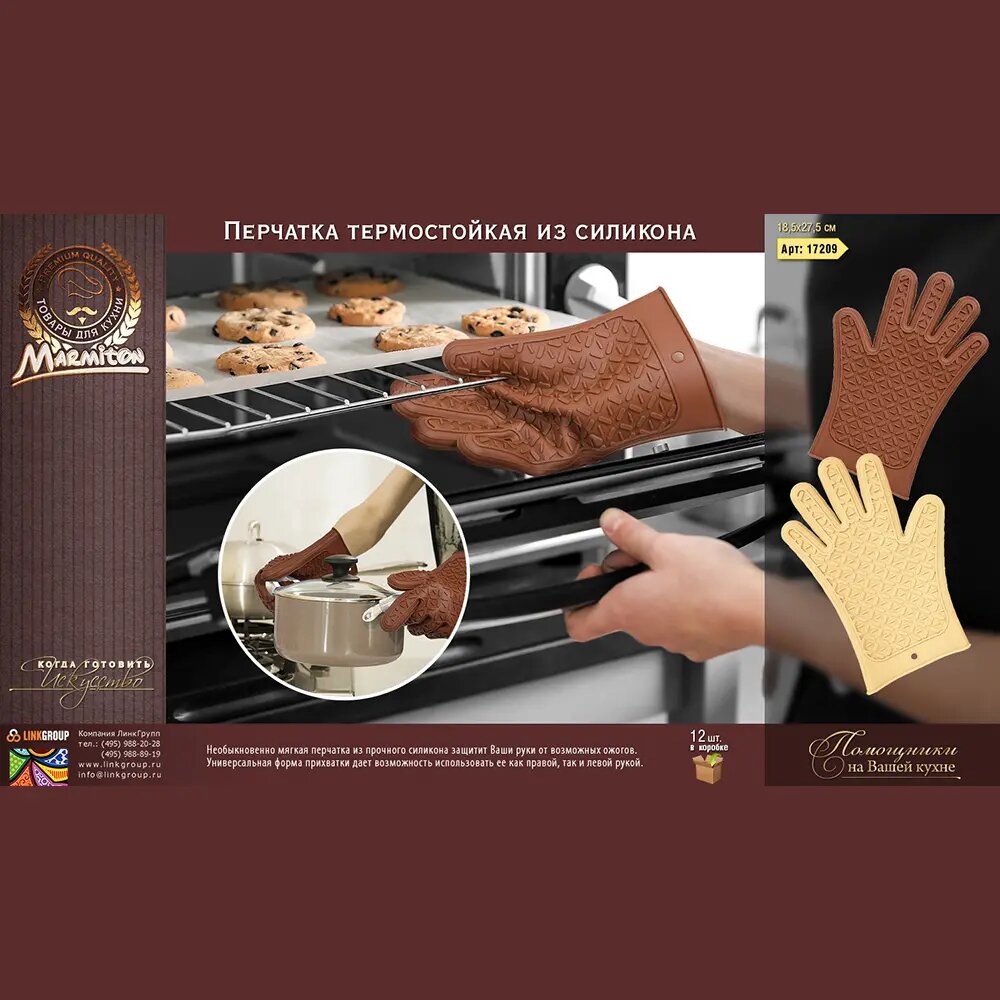 | Прочие особенности и свойства | Прихватка термостойкая Marmiton 17209 будет отличным дополнением к набору аксессуаров и принадлежностей для кухни. Вынуть из духовки горячий пирог или снять с плиты раскаленную сковородку — да не вопрос! Будьте уверены — ваши руки надежно защищены! |