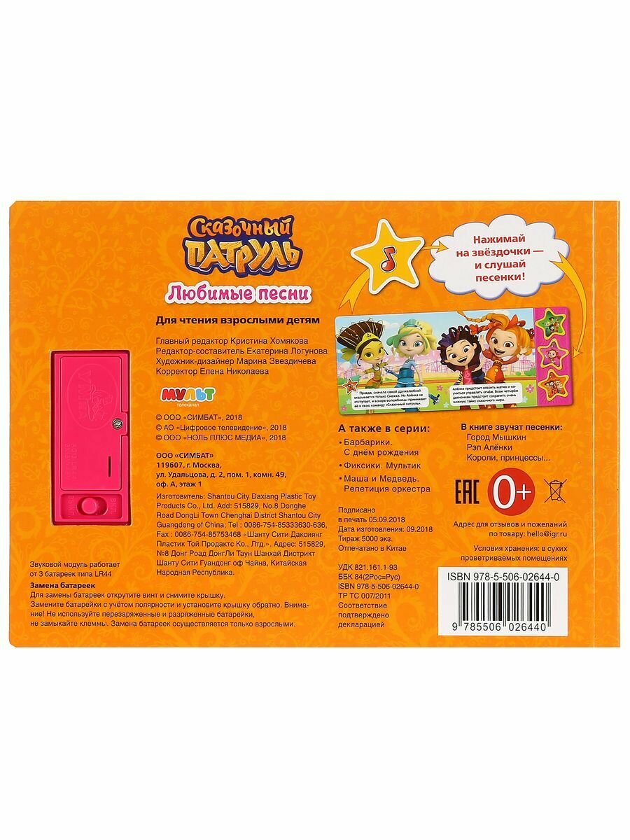 Музыкальная развивающая книжка-игрушка «Сказочный патруль. Любимые песни – сразу 4 в 1:
