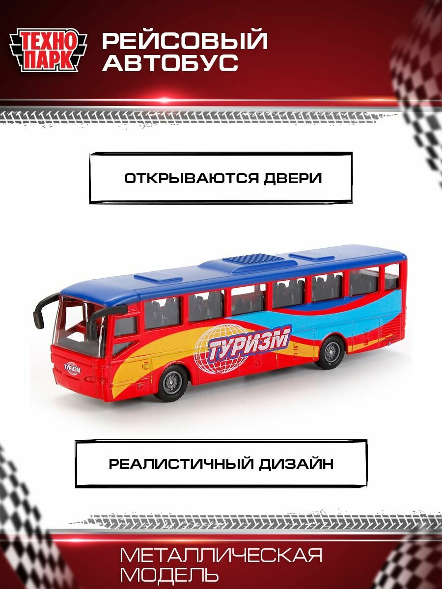 Автобус ТЕХНОПАРК Туризм рейсовый (SB-16-05) 3 см голубой/красный Рейсовый автобус