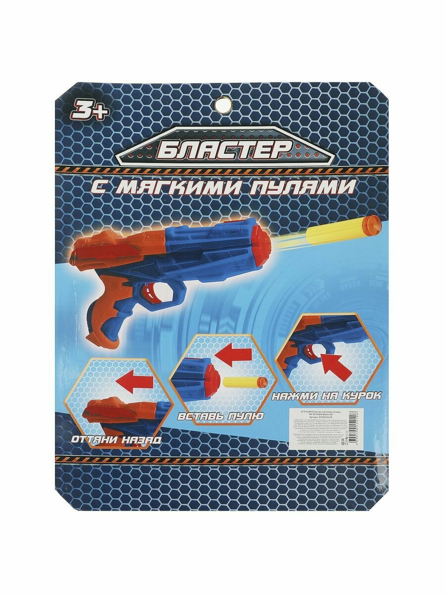 | Комплектация | бластер - 1 шт, мягкие пули - 5 шт |