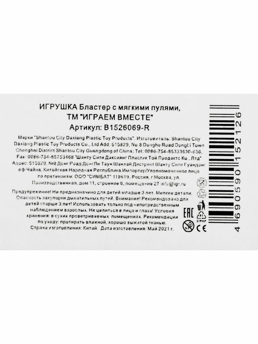 На сегодняшний день товар «Бластер Играем вместе (B1526069-R) 30 см синий/оранжевый» можно купить с кешбеком в 1 магазине: Яндекс.Маркет