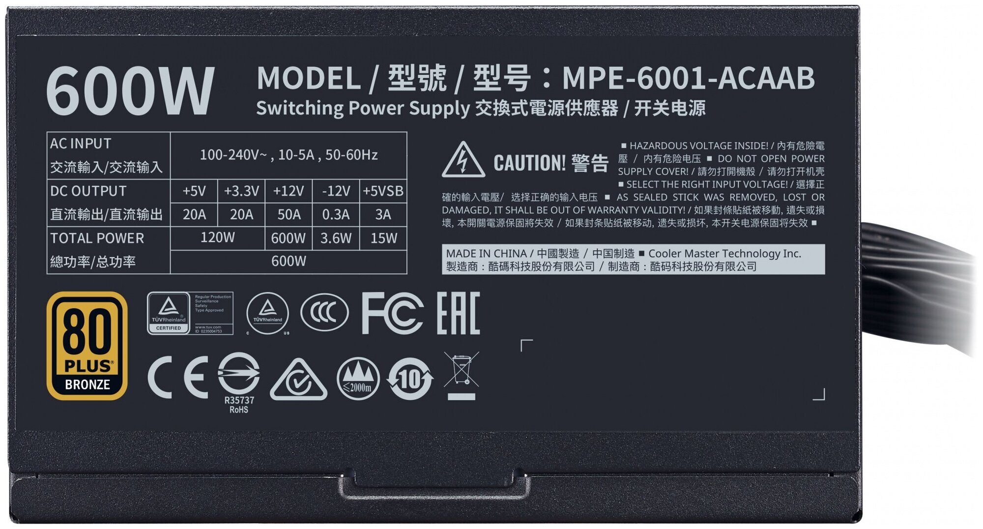 Блок питания Cooler Master MWE Bronze 600 V2 600W (MPE-6001-ACAAB) черный BOX MPE-6001-ACAAB-EU