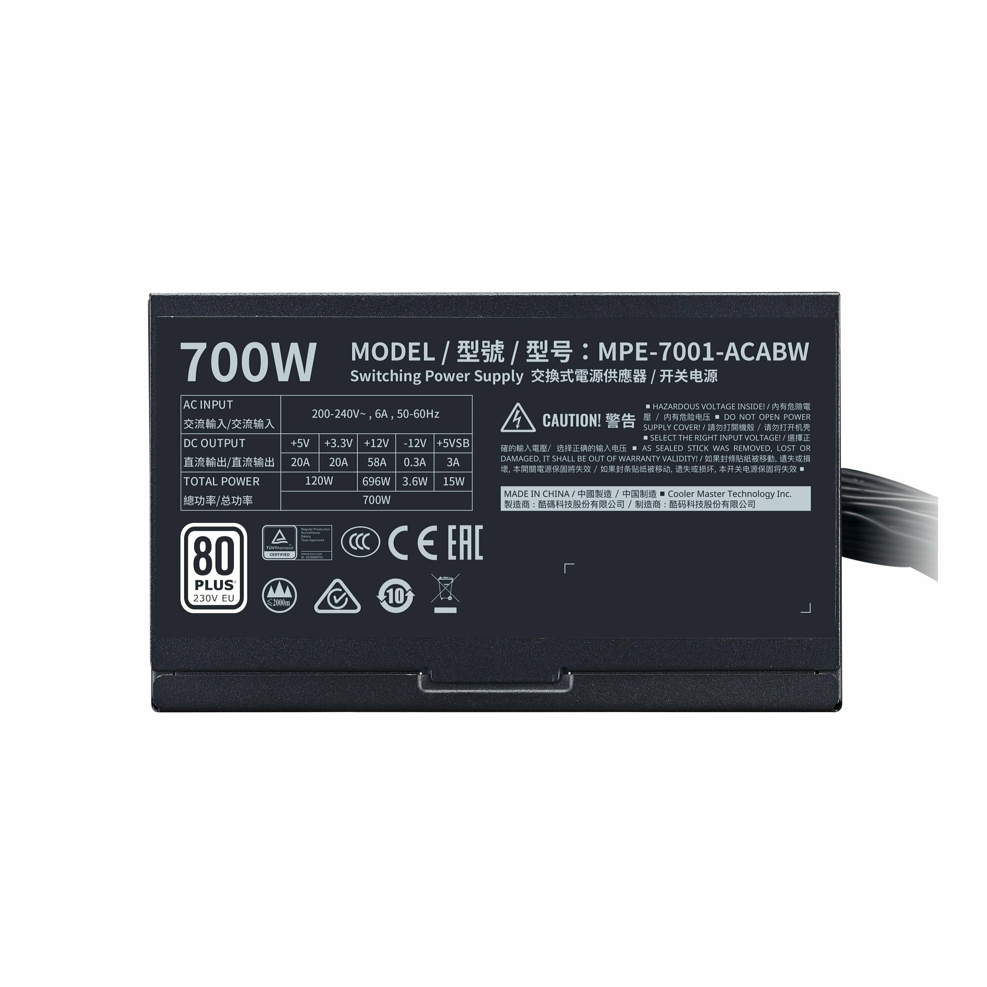 Блок питания Cooler Master MWE 700 White 230V - V2 700W (MPE-7001-ACABW) черный BOX MPE-7001-ACABW-EU