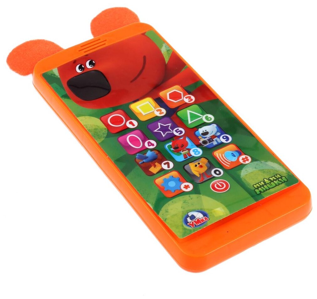 Развивающая игрушка «Обучающий телефон. Ми-ми-мишки» ТМ «УМка».Яркая игрушка с крупными деталями сразу привлечёт внимание ребёнка. Воспроизводит 110 песен, слов и звуков. Поможет малышу изучить цифры, цвета и формы — быстро, весело и эффективно.Развивающая музыкальная игрушка «Обучающий телефон. Ми-ми-мишки» ТМ «УМка» 6 в 1:— Слушаем: со звуковыми эффектами, с регулировкой громкости и функцией вкл/выкл,— С текстильными элементами-ушками мишки,— 12 Песенок из мультфильма, загадок и сказок,- Режим «позвони другу»,— 10 Режимов работы,— Учим: цифры, формы и цвета вместе с любимыми персонажами — «Ми-ми-мишками».Размеры: 6,8 * 13,8 * 1,6 см.Материал: пластмасса + металл.Работает от 3-х батареек ААА (мизинчиковые).Рекомендуем для детей от 3-х лет.