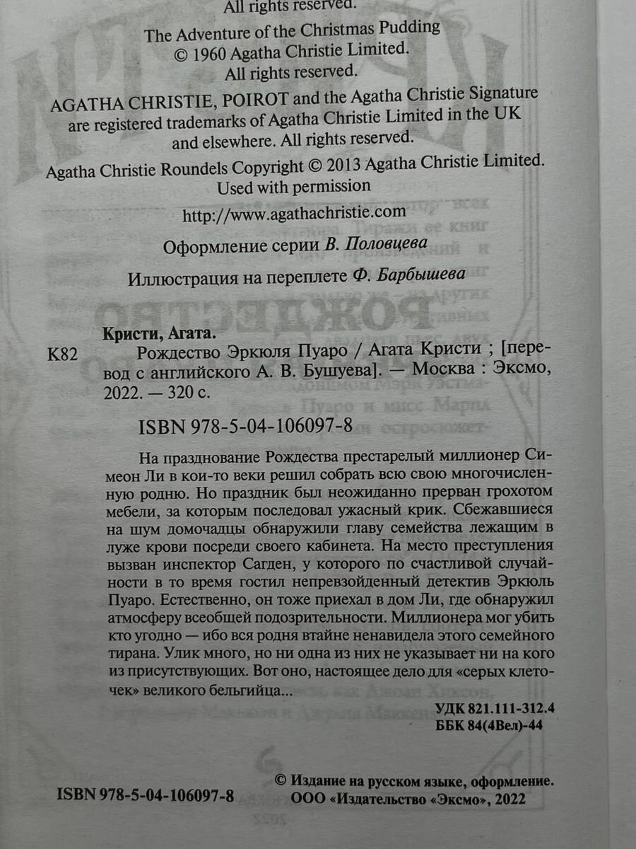 Очень понравился рассказ "Приключение рождественского пудинга" с юмором. Очерь приятный подарок от издательства. Очень хорошая серия! Всё любителям детектива и Агаты Кристи советую брать и читать!