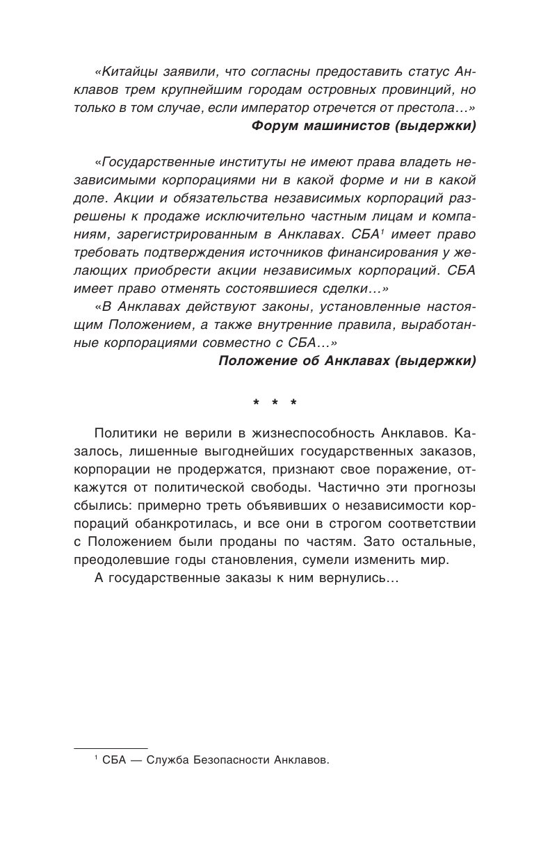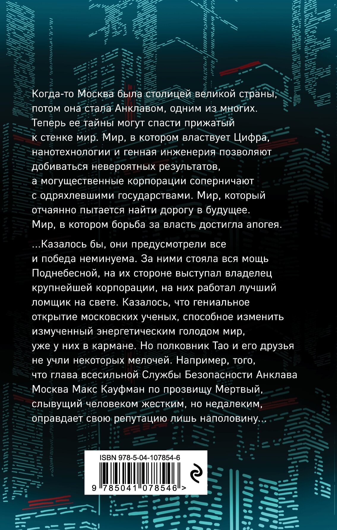Когда-то Москва была столицей великой страны, потом она стала Анклавом, одним из многих. Теперь ее тайны могут спасти прижатый к стенке мир. Мир, в котором властвует Цифра, нанотехнологии и генная инженерия позволяют добиваться невероятных результатов, а могущественные корпорации соперничают с одряхлевшими государствами. Мир, который отчаянно пытается найти дорогу в будущее. Мир в котором борьба за власть достигла апогея.