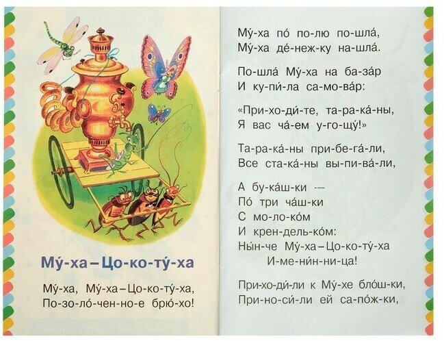 В этой книжке малыши прочтут знаменитую сказку К. Чуковского "Муха-Цокотуха".