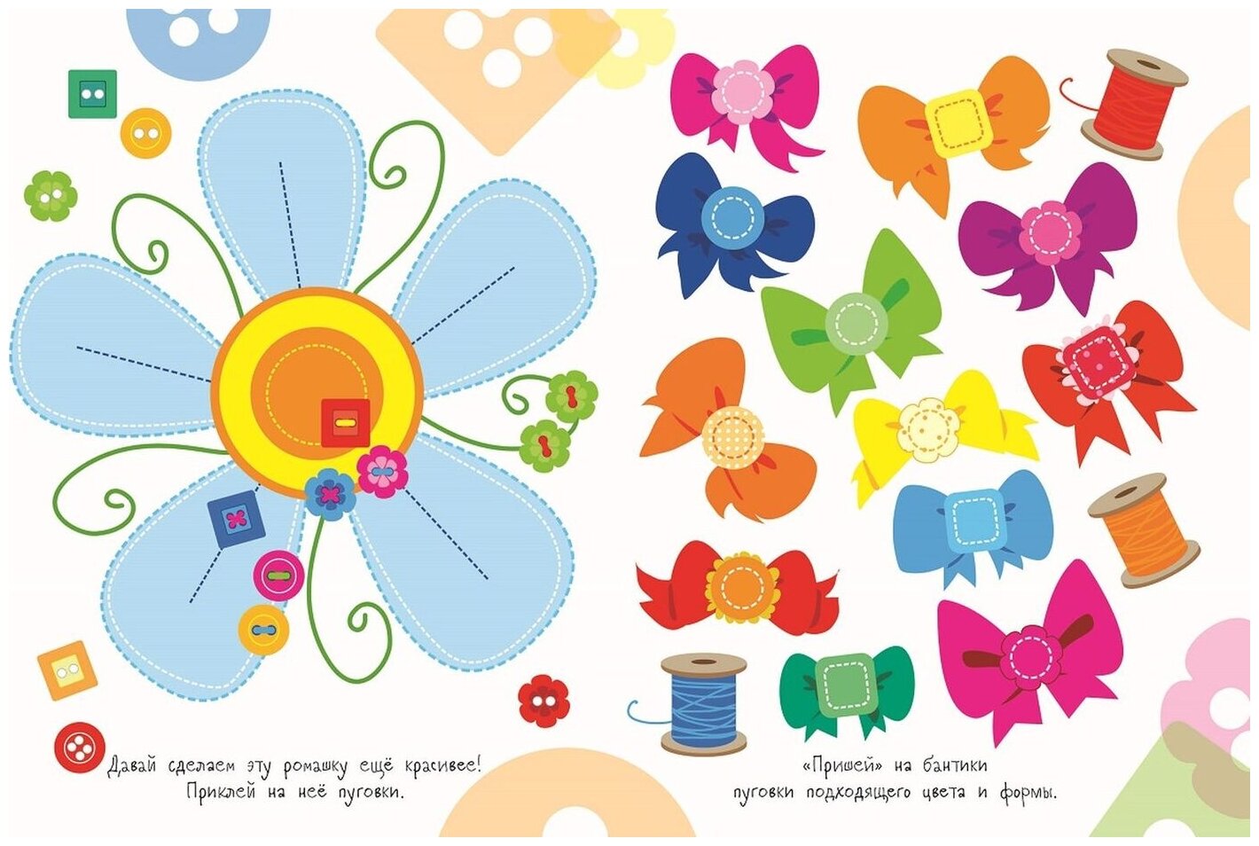 В этой книге вашего малыша ждёт необычная игра с наклейками. Каждую картинку нужно дополнить пуговками. Покажите малышу, что пуговки можно приклеивать в пунктирные кружочки, на петельки или в любые подходящие места. И конечно, пуговками можно украшать картинки! Если с первой попытки приклеить пуговку ровно не получилось - не беда, ведь наклейки многоразовые.