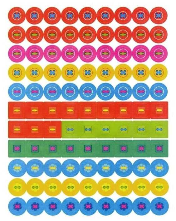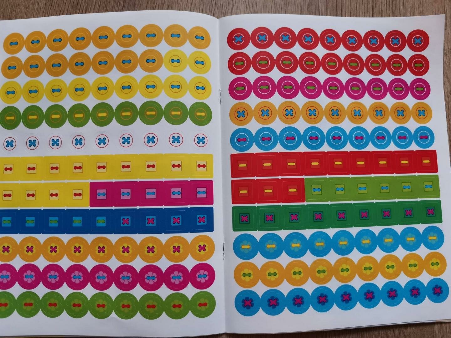 Пуговки купили в коллекцию, но по возрасту пока рано. Они очень мелкие в сравнении с другими наклейками этой серии. Цвета и формы разные. Есть круглые, квадратные пуговки и пуговки-цветочки. Есть имитация нитки.