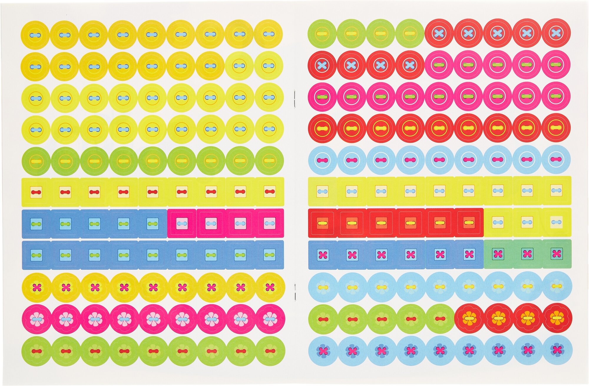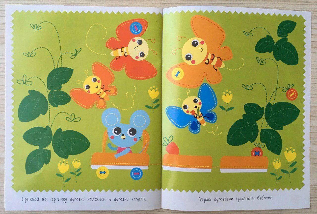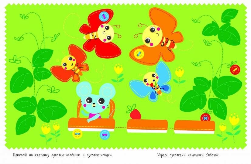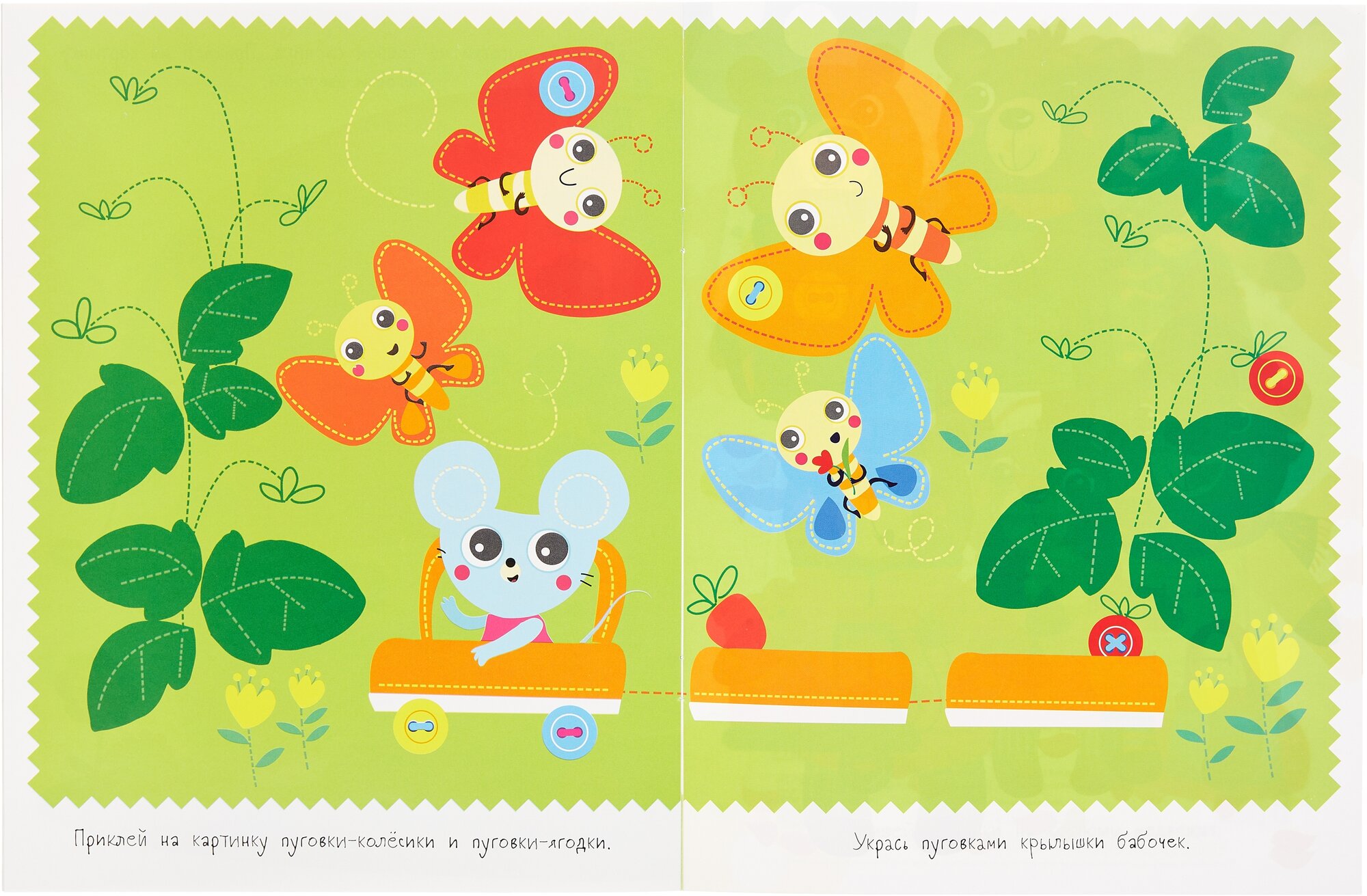 В этой книге вашего малыша ждёт необычная игра с наклейками. Каждую картинку нужно дополнить пуговками. Покажите малышу, что пуговки можно приклеивать в пунктирные кружочки, на петельки или в любые подходящие места. И конечно, пуговками можно украшать картинки! Если с первой попытки приклеить пуговку ровно не получилось - не беда, ведь наклейки многоразовые.
