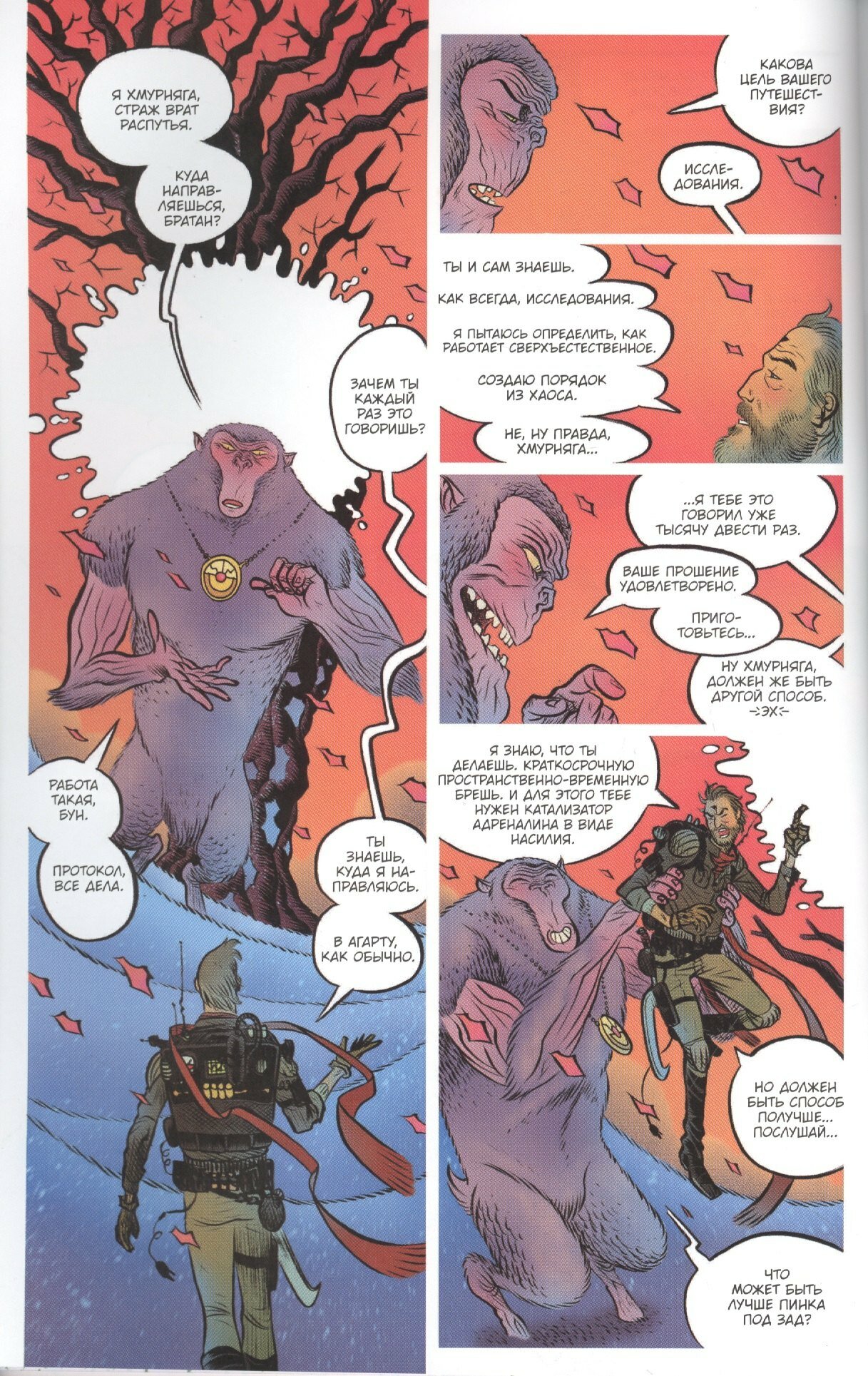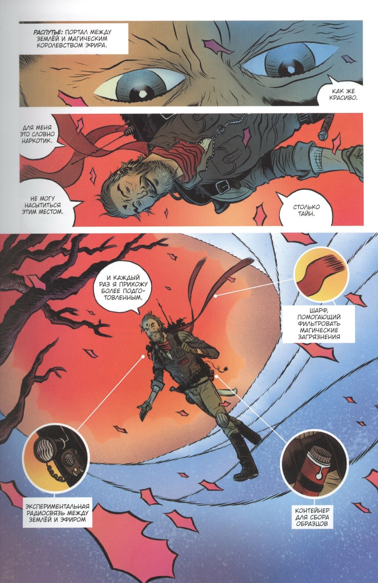Вокруг этого вопроса крутится "Эфир", хитовая авторская серия от признанного писателя Мэтта Киндта (MIND MGMT, DEPT. H) и художника Дэвида Рубина ("Боевой Парень"), в которой вы найдете волшебные пули, фиолетовую гориллу-стража, фей, големов, тайные порталы и верящего лишь в науку исследователя, который никак не готов принять существование сверхъестественного, несмотря на все окружающие его доказательства.