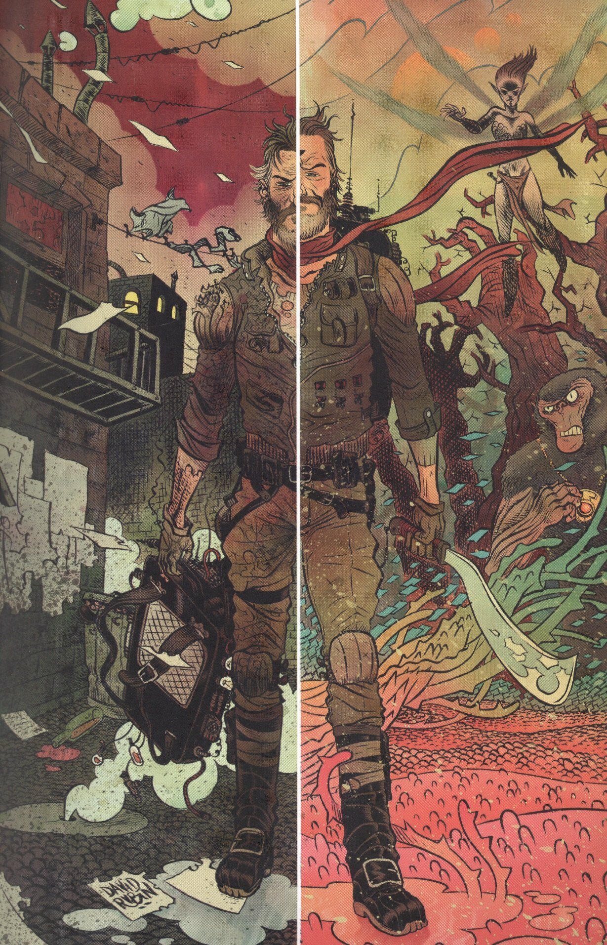 Вместе с главным героем этого комикса вы будете исследовать магический мир под названием Эфир, наполненный множеством диковинных существ, поучаствуете в расследовании убийства и узнаете трагичную историю человека, одержимого неизведанными красотами этого волшебного места и пытающегося привнести порядок в его хаотичное, полное неопределенности существование. Если к рисунку нареканий у меня вообще нет (Дэвид Рубин рисует просто великолепно!), то к сценарию есть пара незначительных претензий. Во-первых, повествование здесь очень стремительное и из-за этого ты порой не успеваешь прочувствовать некоторые моменты, на которых сценаристу стоило бы немного "притормозить" (особенно в драматичные моменты). Во-вторых, неумелая попытка заинтриговать читателя загадкой личности главного злодея, когда ближе к концу истории тебе раскрывают его личность в стиле "вот это поворот!" на ум приходит только одно "опять садовник убийцей оказался?!". В остальном же комикс довольно хорош, особенно понравились миры, которые пытается понять и объяснить с научной точки зрения главный герой.