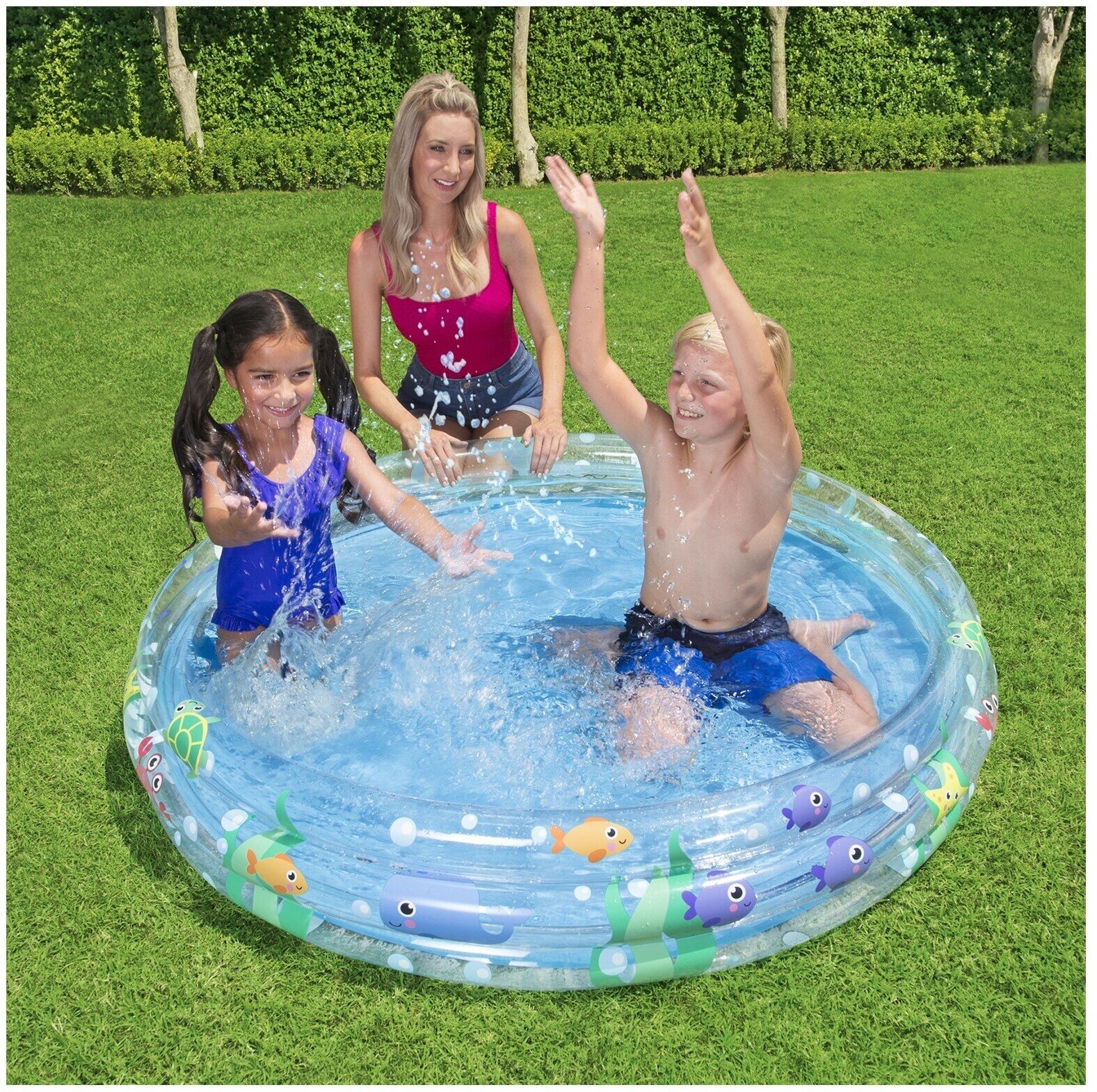 Круглый надувной бассейн для детей от 2 лет.Преимущества:- Изготовлен из высококачественного винила, устойчивый, надежный и безопасный;- Имеет мягкие стенки с широкими бортиками и жесткое дно из ПВХ-пленки;- Бассейн легко надувается и устанавливается на любой ровной поверхности;- В комплект входит сверхпрочная ремонтная заплата.На холодное время года не рекомендуется оставлять бассейн на открытом воздухе.