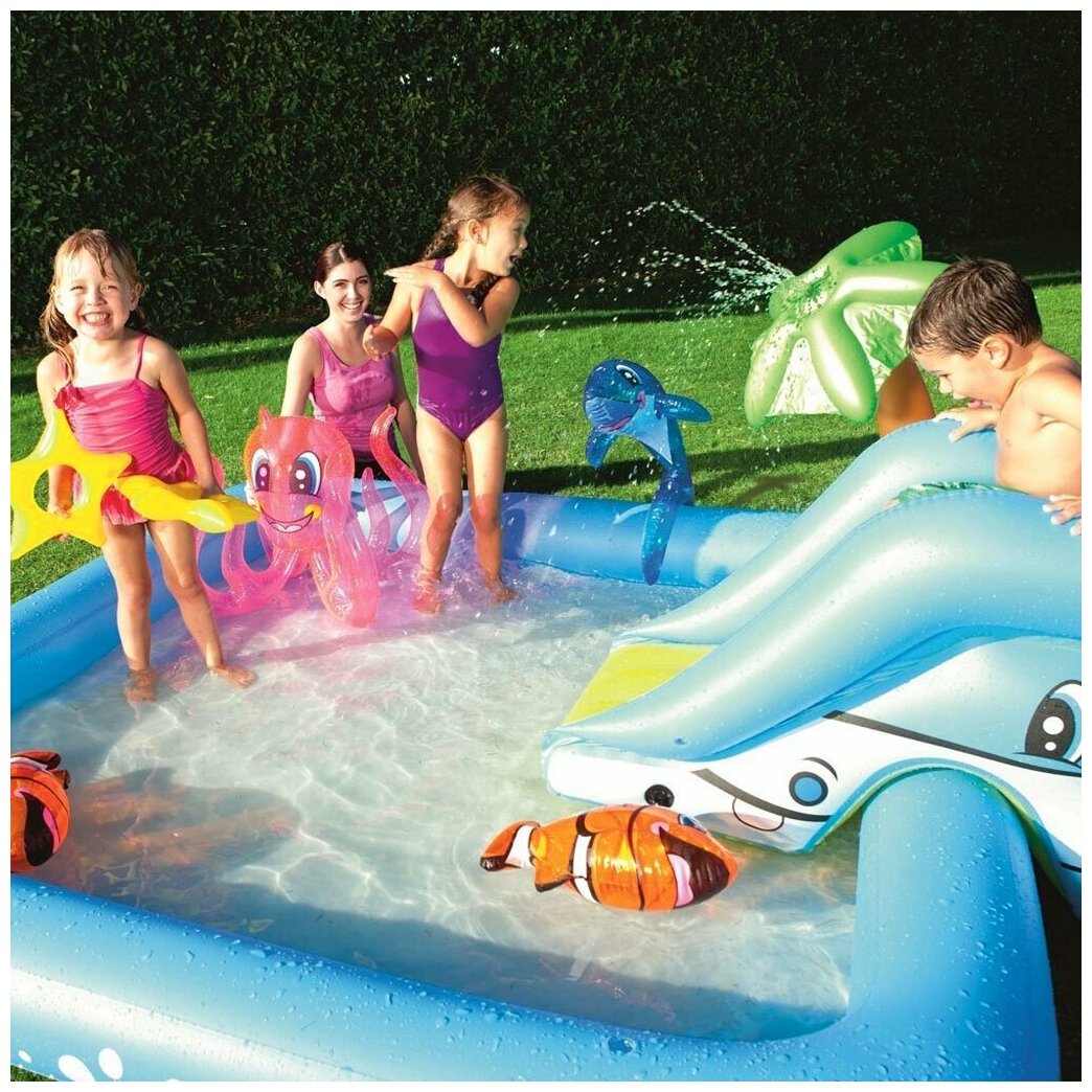 | Комплектация | ремкомплект; надувные кольца; горка; надувная игрушка |