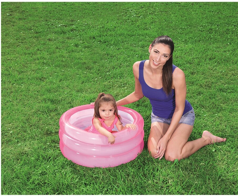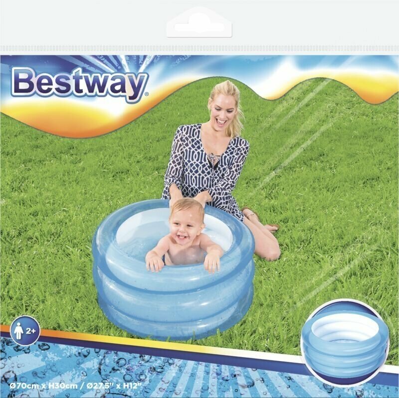 Круглый надувной бассейн Bestway создан для купания маленьких детей. Бассейн состоит из трех воздушных колец. Стенки и дно выполнены из высокопрочного винила безопасного для здоровья вашего ребенка. Размер 70х30см.