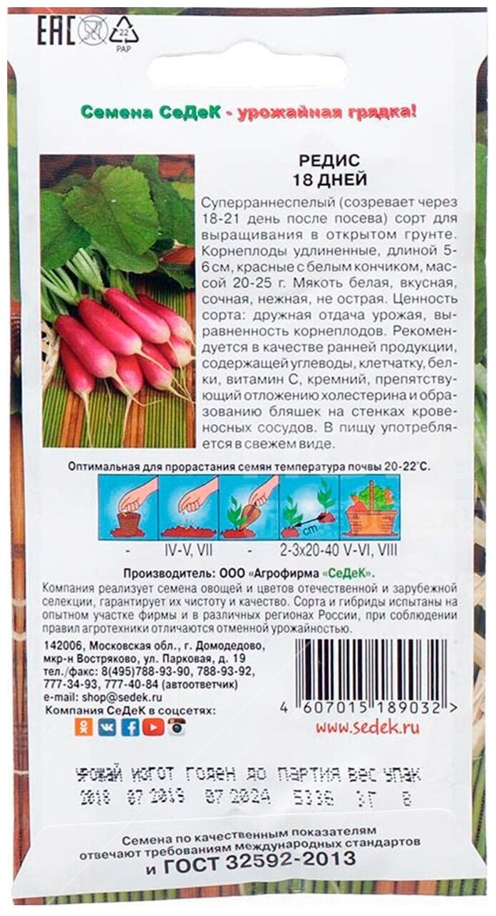 Редис 18 дней (18 dney). Краткий обзор: Редис 18 дней описание характеристик, где купить семена