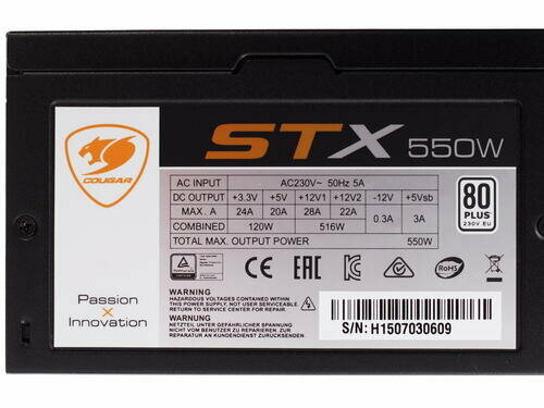 Блок питания Cougar STX 550 мощностью 550 Вт — это надежный источник энергии для игрового компьютера.