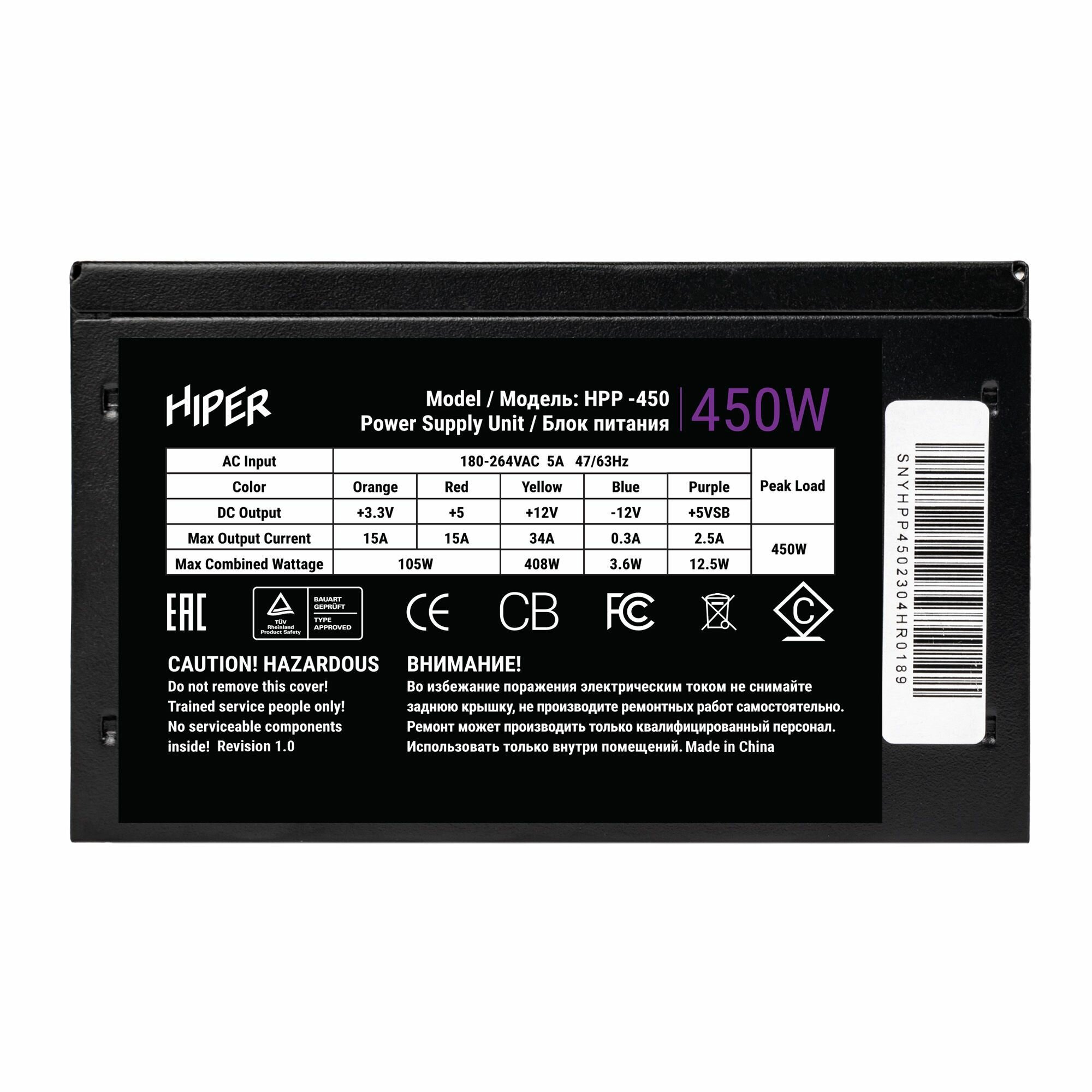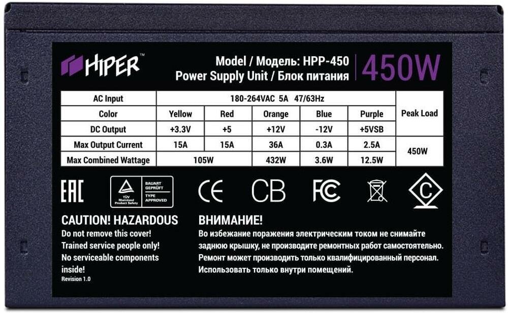 Блок питания HIPER HPP-450 черный BOX