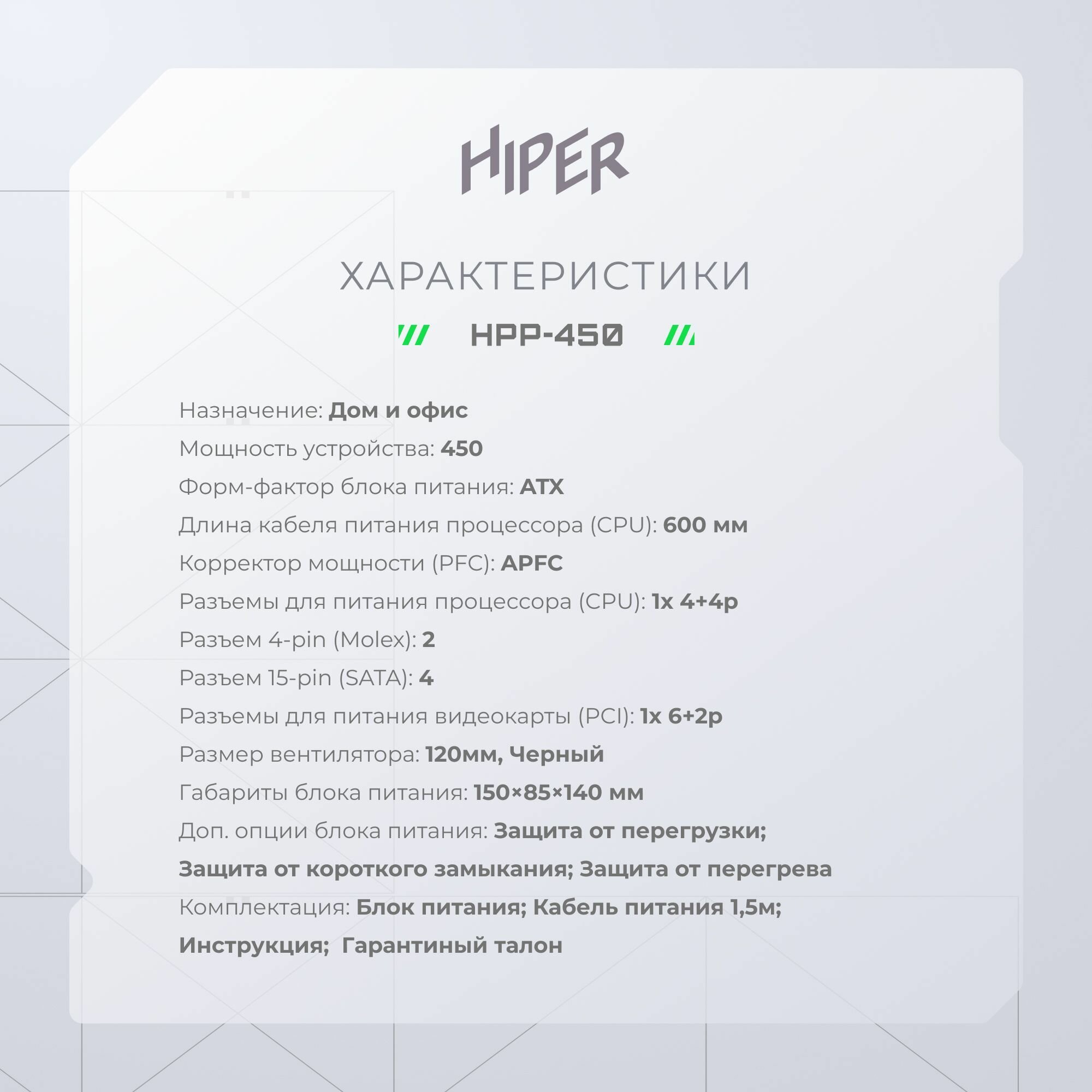 | Артикул производителя (Part Number) | HPP-450 |