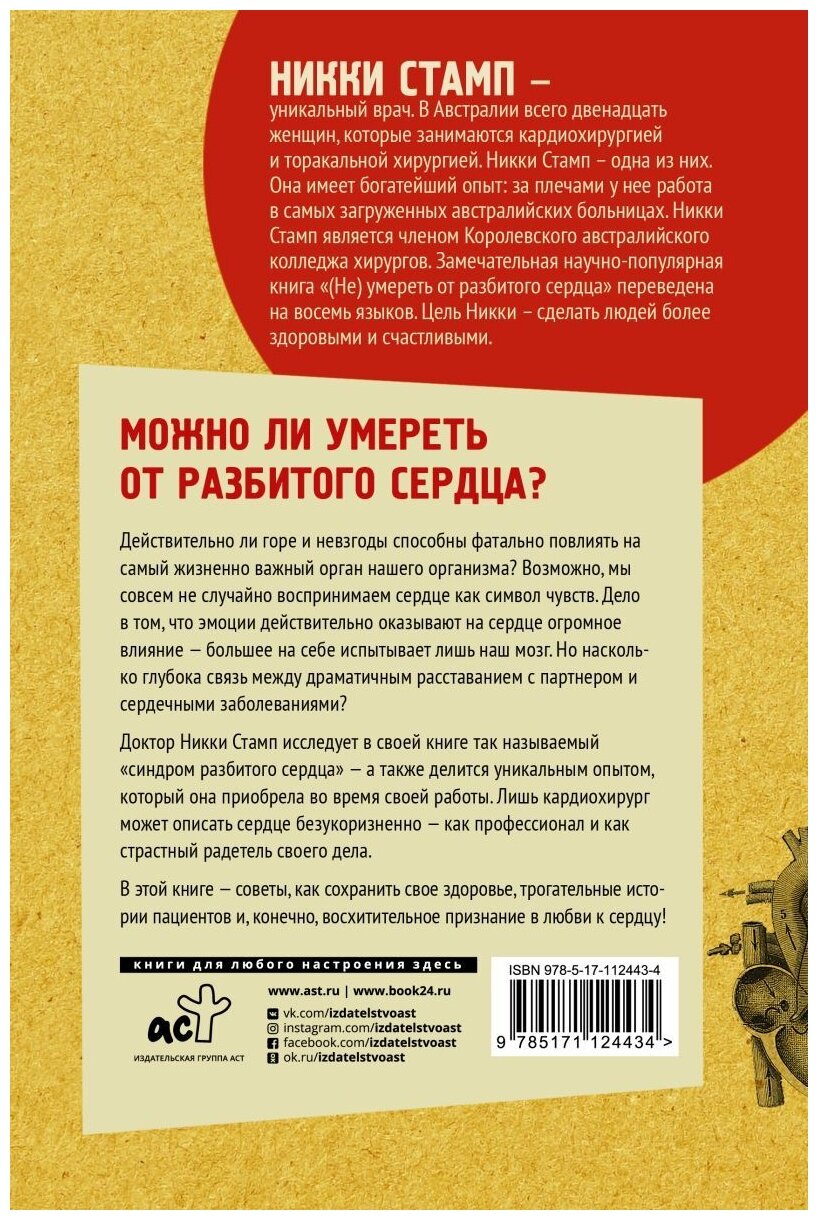 Можно ли умереть от разбитого сердца? Действительно ли горе и невзгоды способны фатально повлиять на самый жизненно важный орган нашего организма? Возможно, мы совсем не случайно воспринимаем сердце как символ чувств. Дело в том, что эмоции действительно оказывают на сердце огромное влияние. Но насколько глубока связь между драматичным расставанием с партнером и сердечными заболеваниями? Доктор Никки Стамп исследует в своей книге так называемый "синдром разбитого сердца" - а также делится уникальным опытом, который она приобрела во время своей работы. Истории о пациентах, советы от профессионального врача-кардиолога и восхитительное признание в любви к сердцу - все это ждет вас в замечательной научно-популярной книге "(Не) умереть от разбитого сердца".