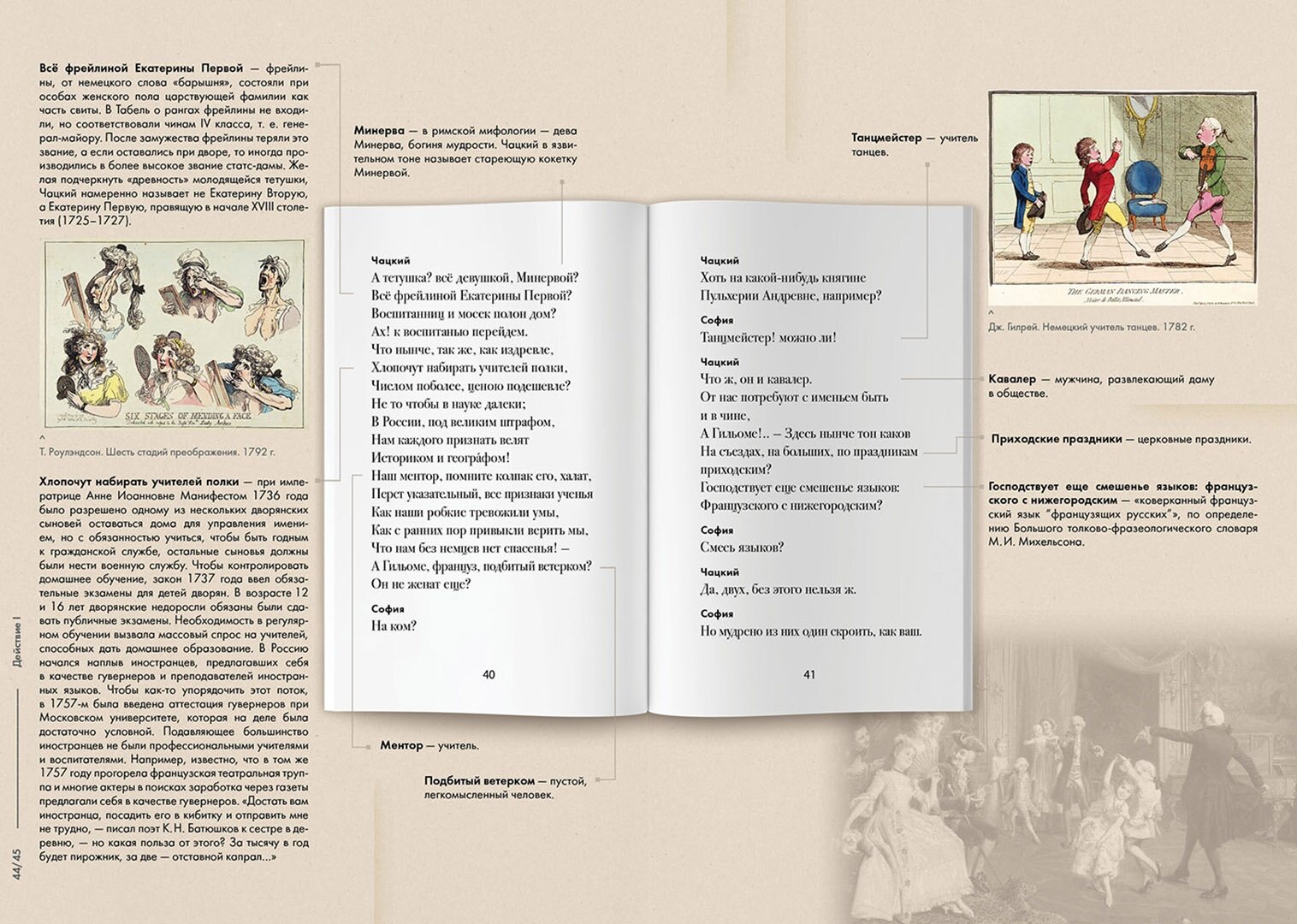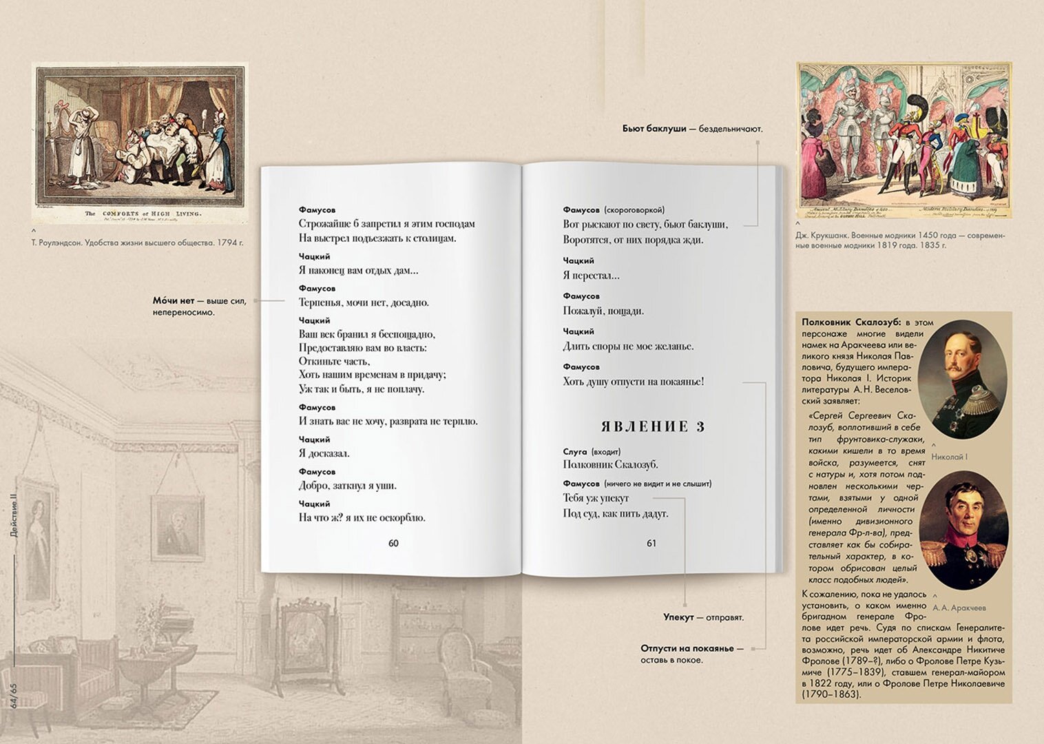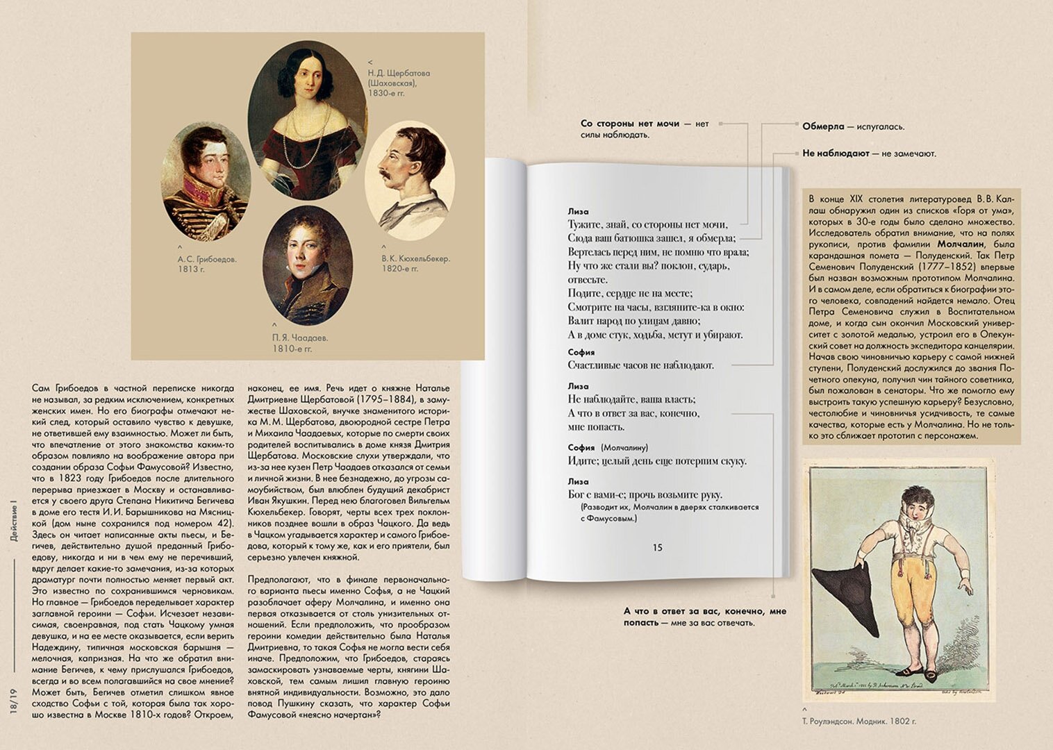 Изумительное издание. Уверена, если эта книга попадёт в руки школьника 9 класса, программное "Горе от ума" имеет все шансы стать любимым произведением. Благодаря иллюстрациям и комментариям, расположенным рядом с текстом комедии, эпоха становится ближе, текст - понятнее, восприятие - живее. Особенно порадовали рисунки-карикатуры о быте и нравах того времени. Книга будет прекрасным подарком и подростку, и взрослому.