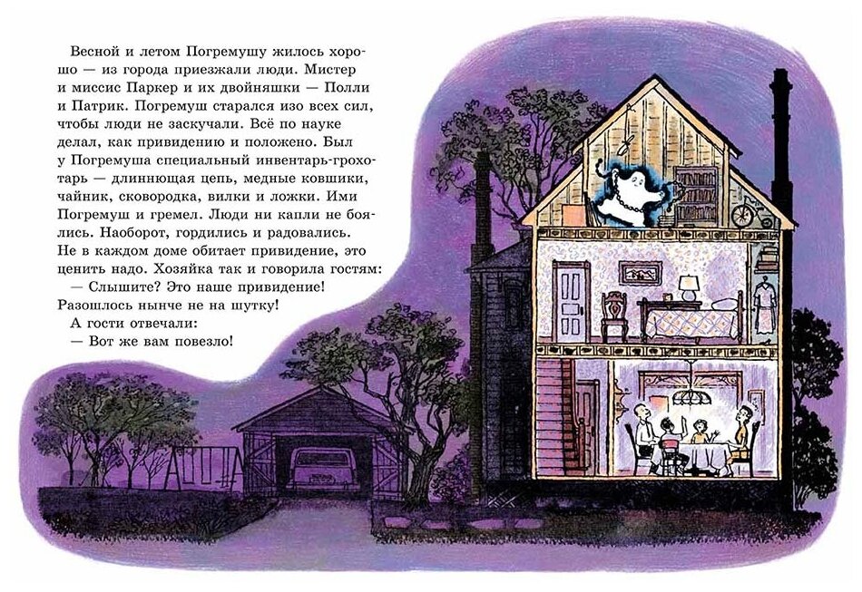Но вот осенью и зимой привидению одиноко, скучно, тоскливо. Люди уехали, дом пустует, пугать некого. Чтобы было с кем словом добрым перемолвиться, Погремуш приглашает пожить в доме полевую мышь.