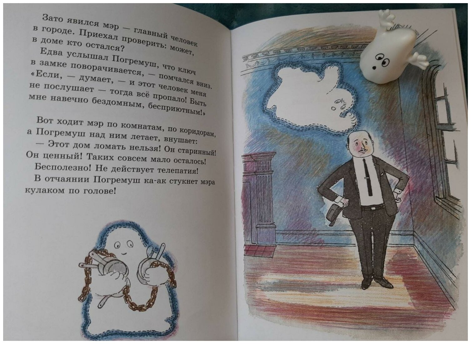 И если бы не телепатические способности привидения, камня на камне бы от дома не осталось! Но все закончилось хорошо, как и подобает правильной сказке. А в третьей истории, «Погремуш и привиденок», мы видим, как жил-поживал Погремуш в своем любимом доме, где устроили Исторический музей.