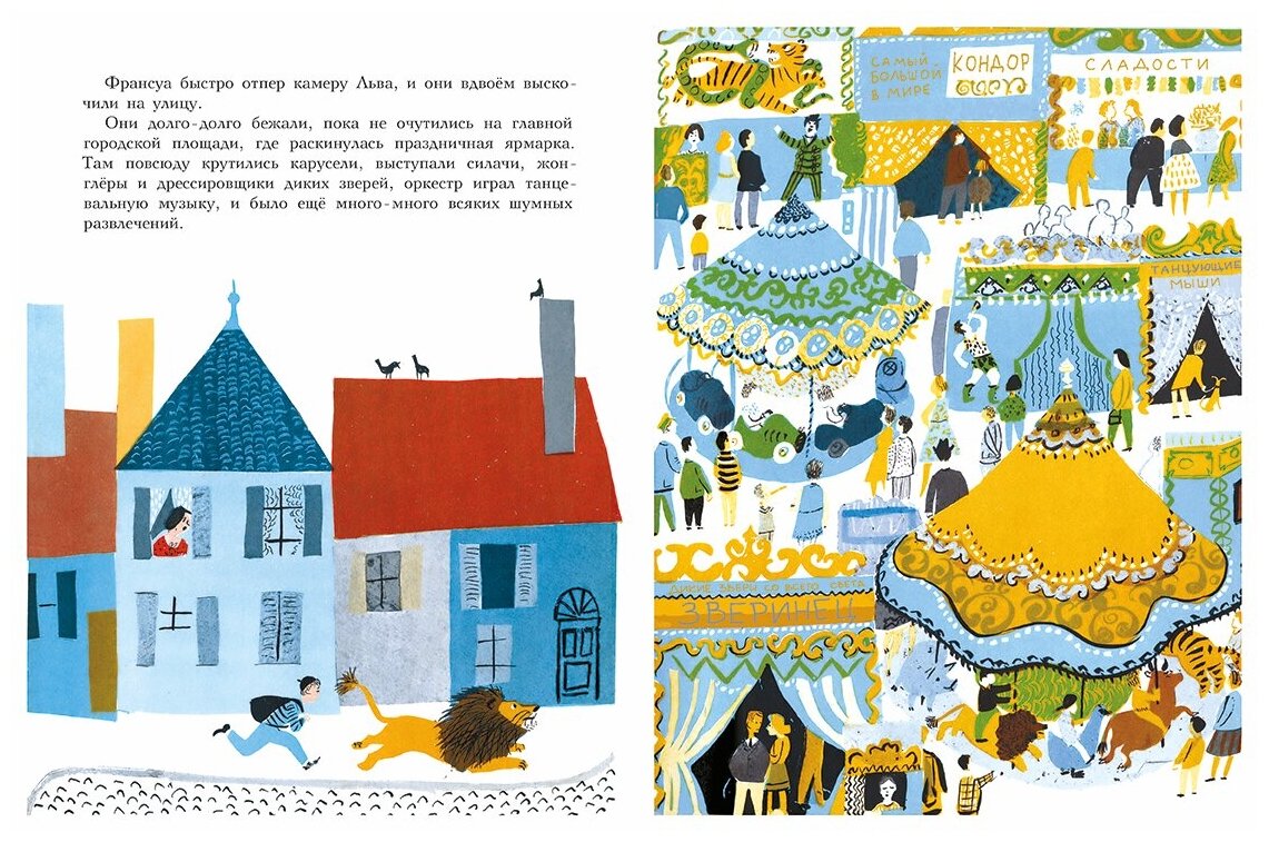 Временами книжка очень смешная – как, например, в той части, где лев решил выйти из зоопарка и прогуляться по городу, навестить всех этих милых людей. Вот только они, увидев льва вне клетки, почему-то не улыбаются и не здороваются, а визжат и мчатся прочь!