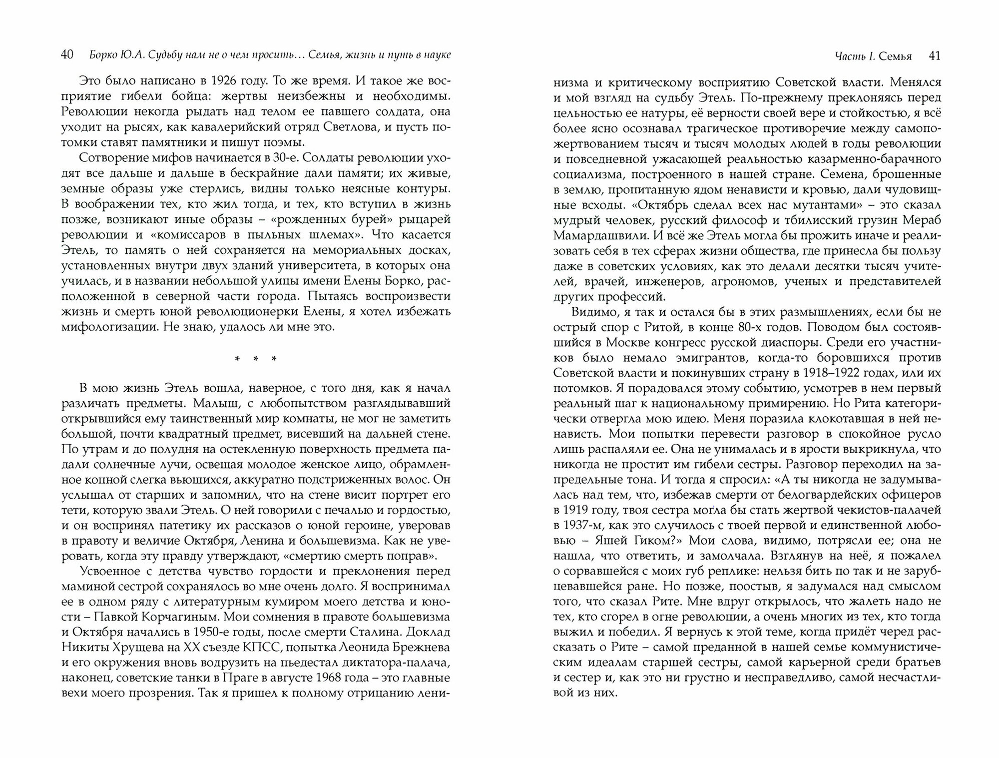 Книга включает в себя два предисловия, три части и приложение со стихами автора на 40 стр. (последнее – совсем не мое). В тексте много публицистики, оценок событий прошлого с современных позиций. А поскольку автор пишет, что разочаровался в ленинизме в 1968 г., то и оценки его носят соответствующий характер.