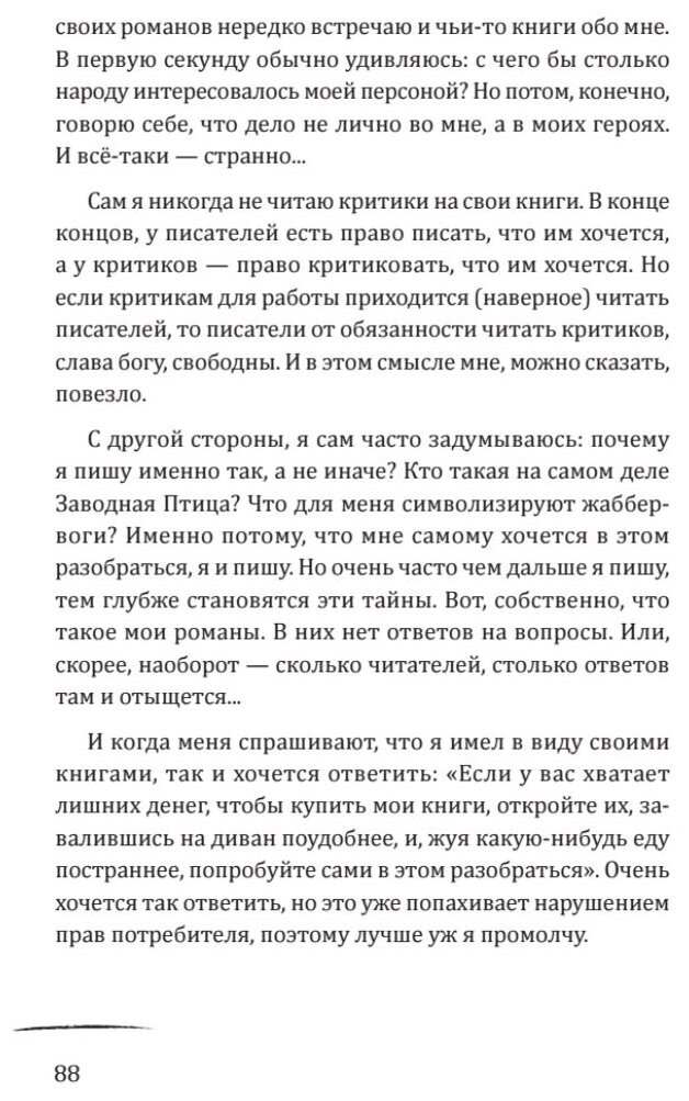 Не помню уже, когда впервые познакомилась с этой книгой. Возможно, когда уже побывала в стране чудес, поохотилась на овец и попыталась отыскать заводную птицу, но точно помню свой невообразимый шок и трепет от того, что, оказывается, есть такой человек, с которым можно "обсудить" то, что происходит в романах у Мураками. Выдвинуть свои предположения, а он уже со своей стороны расскажет кое-что еще. Да такое "кое-что еще" что дух захватывает и принимаешься осмысливать всё заново, со всех сторон и сравнивать со своими ощущениями и догадками.