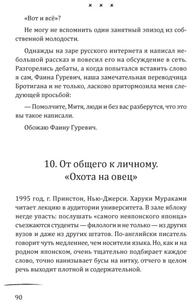 Все-таки дочитала книгу до конца. Впечатления Коваленина о трудностях перевода с японского, заметки о любимых произведениях Мураками и его путешествии с автором на Сахалин читала с удовольствием. А вот его размышления о произведениях Мураками не захватили. Надо прочитать их самой, а не в пересказе переводчика.