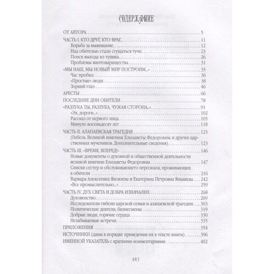 Трёхтомник включает в себя вновь переизданный первый том под названием "Традиции российского милосердия. Марфо-Мариинская обитель", который повествует о Великой княгине Елизавете Фёдоровне Романовой, истории создания ею Марфо-Мариинской обители милосердия.