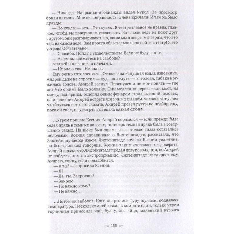 .В романе три сюжетные линии: встреча главного героя со старым другом, побывавшим в плену у моджахедов, а также с двоюродным братом, который оказался сотрудником Штази (Министерство государственной безопасности ГДР) и сыном нациста. Вторая линия - это история деда героя, боевика эсера-максималиста. И, наконец, третья - история тети героя, оказавшейся в оккупированной фашистами Франции.