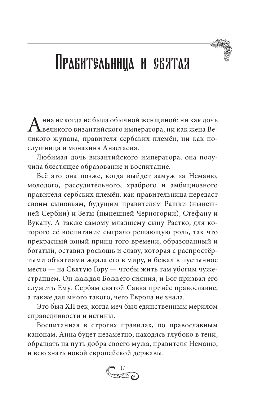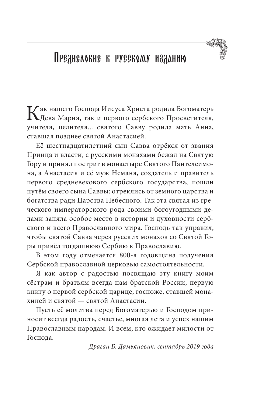 Впервые на русском языке поразительная история жизни преподобной Анастасии Сербской, всенародно почитаемой в Сербии чудотворицы и святой. Книга рассказывает о многих удивительных чудесах, которые совершались и продолжают совершаться ее молитвами. Книга также содержит пророчества святой о будущем русского народа и торжестве православной веры. Автор книги Драган Дамьянович - известный в Сербии писатель, издавший уже более 30 книг.