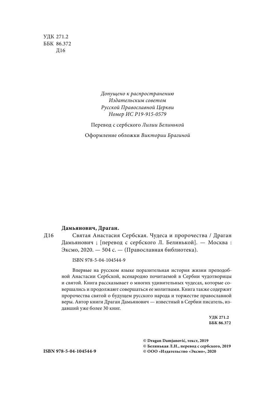 Святая Анастасия Сербская. Чудеса и пророчества (Дамьянович Драган); ООО "Издательство "Эксмо", 2020