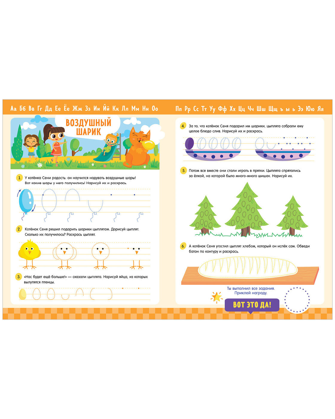С помощью прописей с наклейками ваш ребёнок подготовится к чтению и письму в процессе весёлой игры! В этих тетрадях-тренажёрах собраны 100 увлекательных игр и заданий на каждый день. - Добрые сказки вовлекут ребёнка в процесс обучения. - Милые герои обеспечат прекрасное настроение и помогут легко справиться с заданиями. - Весёлые наклейки не дадут заскучать и превратят обучение в захватывающую игру. - Мотивирующие слова создадут ситуацию успеха. - Пошаговая инструкция для родителей подскажет, как заниматься по прописям.