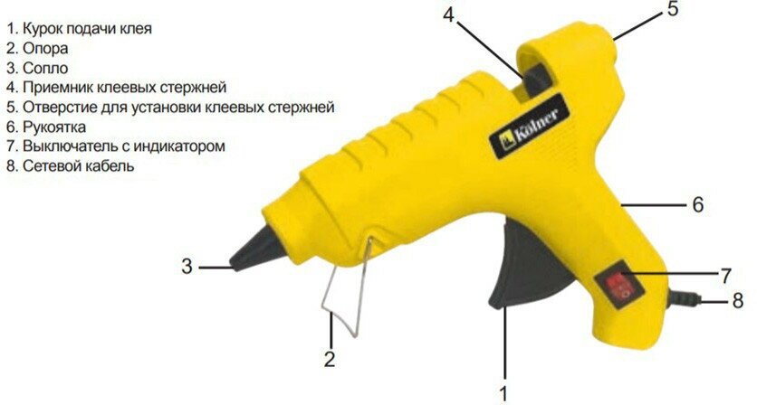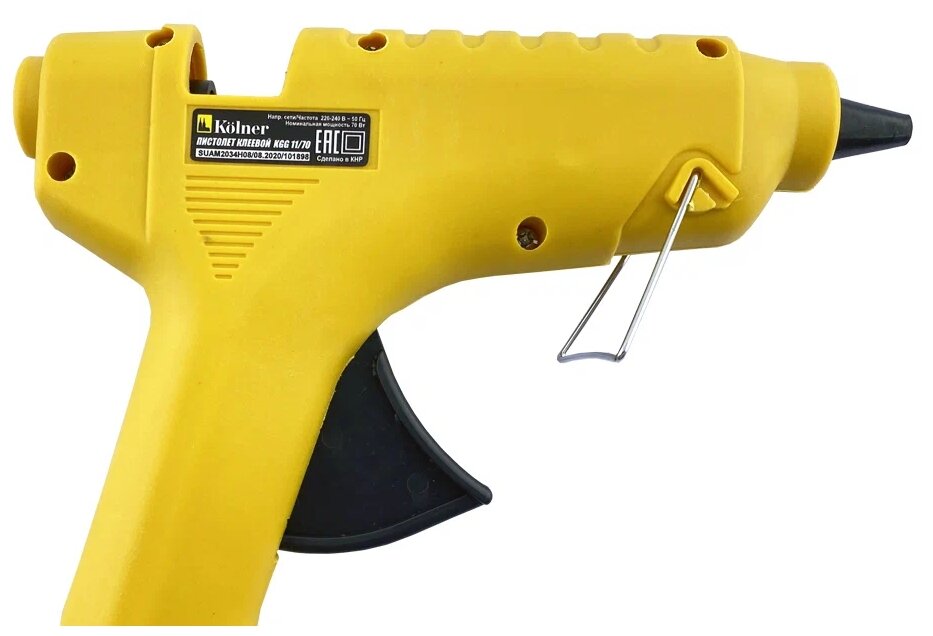 Пистолет клеевой Kolner помогает склеивать твердые поверхности, заполнять строительные швы и зазоры в труднодоступных местах. Предусмотрена специальная опора, на которую можно поставить прибор во время пауз и длительных перерывов в работе. Это обеспечивает удобство в работе.