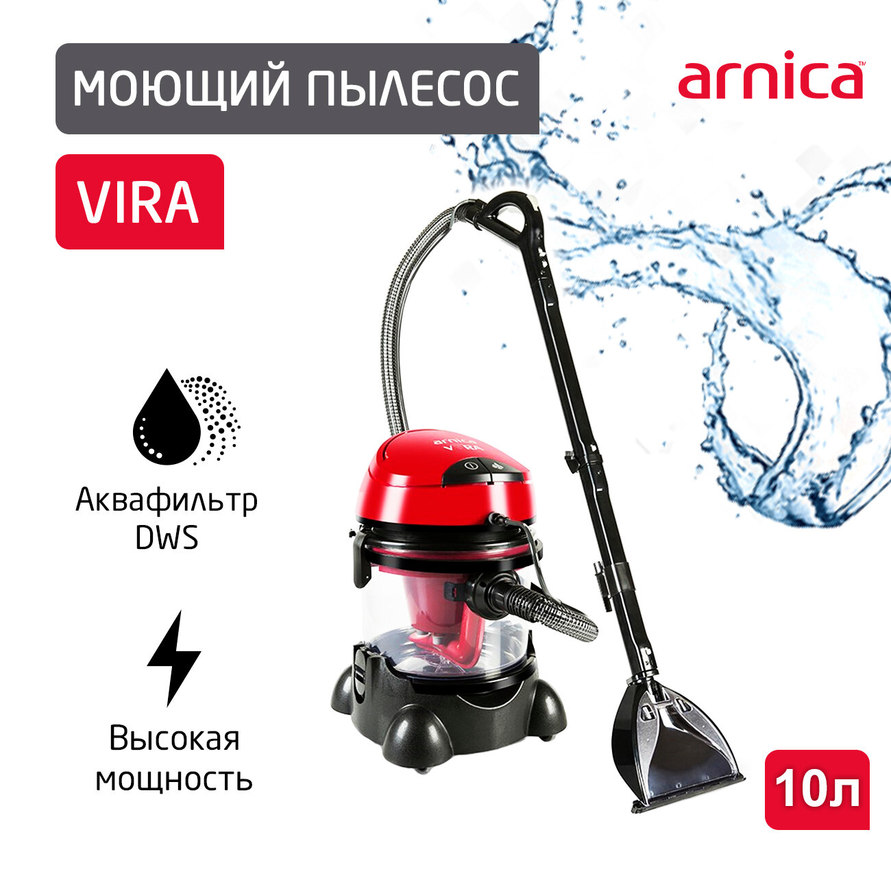 Моющий пылесос Arnica VIRA (ARN 31 R) красного цвета – оптимальный вариант для сухой и влажной уборки с мощностью всасывания до 350 Вт и объемом пылесборника 2 л. Максимальная мощность аппарата достигает 2400 Вт. Фильтрация воздуха осуществляется с помощью аквафильтра, его максимальный объем – 10 л.