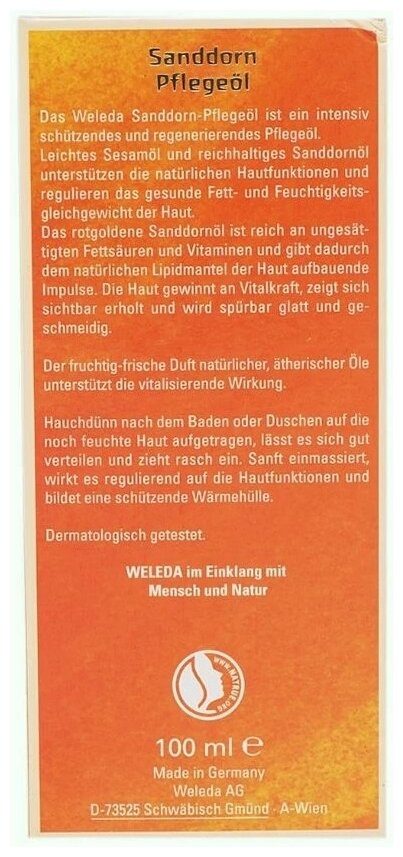 | Полное наименование | Weleda масло "Облепиховое" питательное, 100 мл |