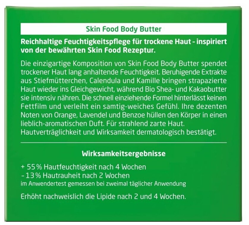 Питательное масло для тела обеспечивает интенсивное увлажнение для сухой и очень сухой кожи. Благодаря лёгкой «взбитой» текстуре легко впитывается и не оставляет жирной плёнки. Входящие в его состав масла ши, семян подсолнечника и какао удерживают влагу, максимально увлажняя кожу и повышая её эластичность. Экстракт листьев розмарина оказывает тонизирующий эффект. Экстракт фиалки трехцветной обладает заживляющими свойствами. Календула регенерирует кожу, а ромашка успокаивает даже самую чувствительную, предотвращая её раздражение. Дерматологически протестирован.
